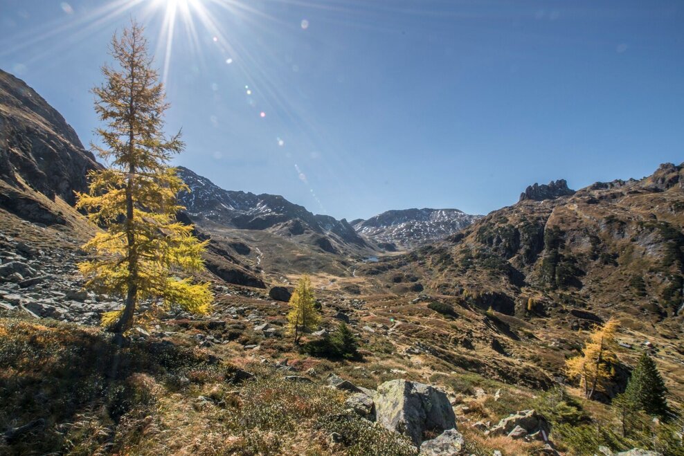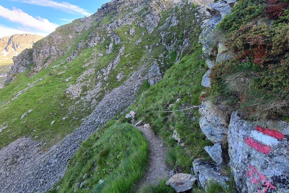 Changes in weather patterns, quick falls in temperature, thunderstorms, wind, fog and snow are some of the dangers that can be encountered on a hiking tour. Hosts of alpine huts and mountain refuges have a lot of experience in the mountains and can give good advice about weather and the trails. Poor equipment, overestimation of one's own capabilities, carelessness, poor personal constitution and/or wrong judgement can lead to critical situations. In case of thunderstorms: avoid summits, ridges and steel ropes.