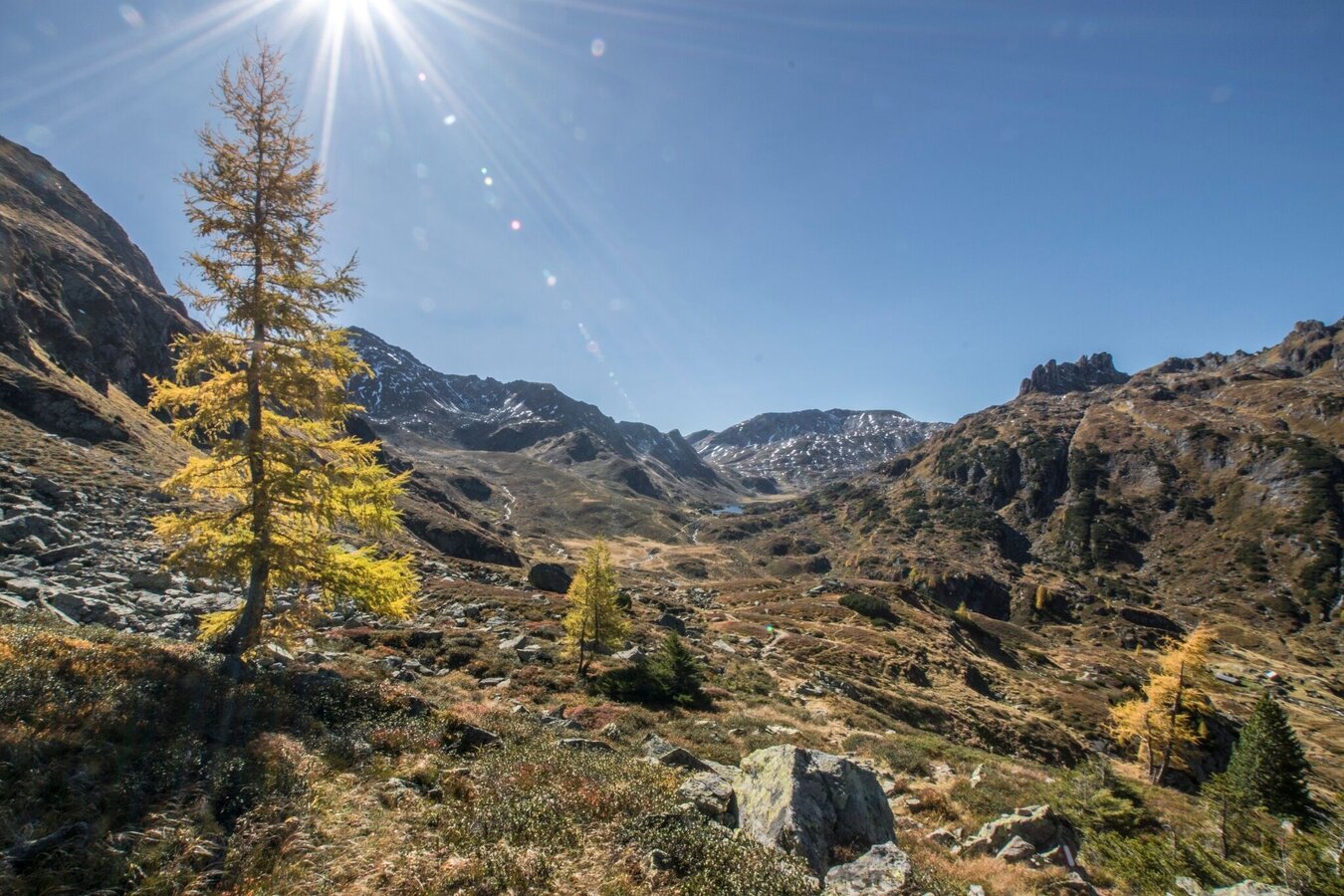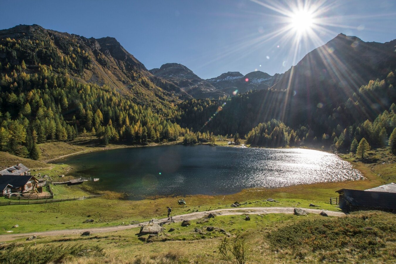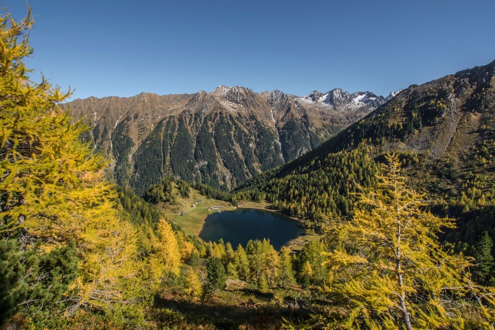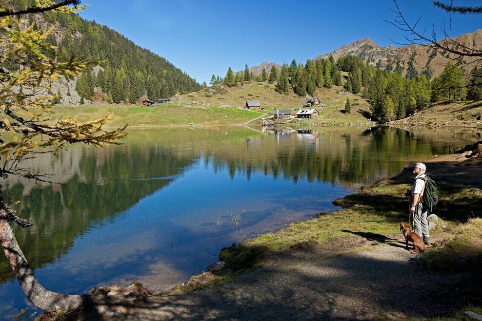 The steep descent takes you down towards the lake. Right at the beginning there is a passage with a steel rope for security. Then you reach a larch and pine forest through which you head downhill to reach Duisitzkarseehütte and Fahrlechhütte chalets at the lake. In summer the days are more than long enough to enjoy some time at the lake and marvel at the wonders of nature. If you are one of the toughest ones and go swimming in the lake, be considerate of the fish in the lake and avoid, for example, stirring up dust. In addition, please do not go into the water with sunscreen, as this can upset the sensitive ecology of the lake.