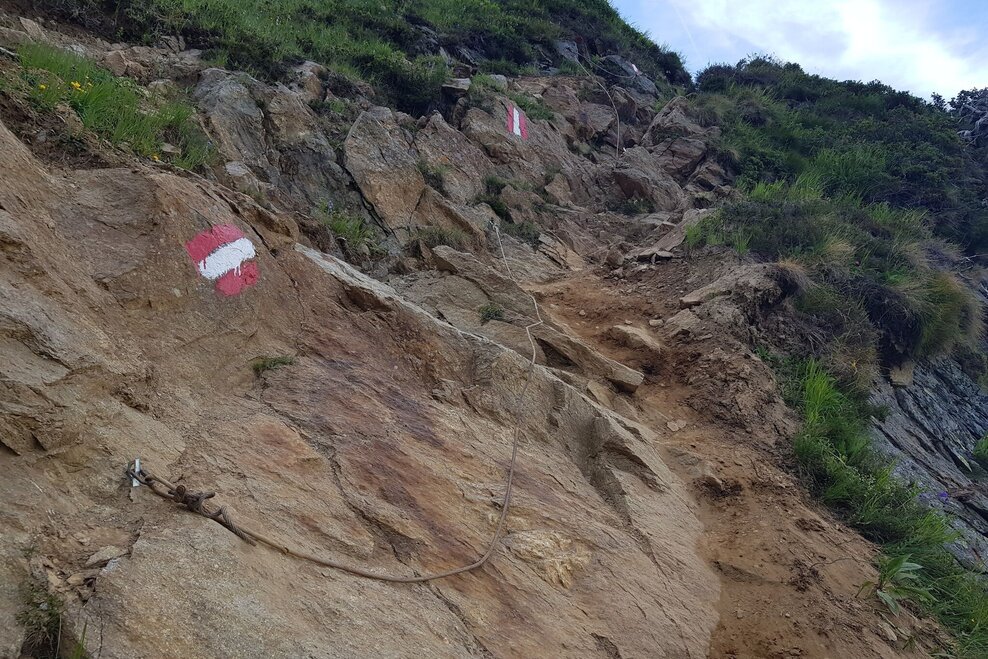 Available GPS data - just like hiking maps - is only a guidance for orientation and can never depict a trail exactly with all its details. Especially at dangerous spots it is essential to judge on site how to proceed.