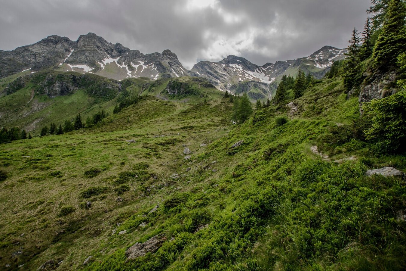 At the East shore you then continue on the trail towards Neualm. Through a high forest you hike along the Northeast face of Duisitzer Hahnkamp with some slight uphill and downhill passages. Once you reach Neualm (a private chalet) you make a right towards Keinprechthütte and continue on trail n° 774. Just after a view minutes the broad Neualmkar cirque opens up before you and gives sight into a beautiful scenery through which the Neualmbach creek meanders. You then continue to Keinprechthütte refuge where you stay overnight.