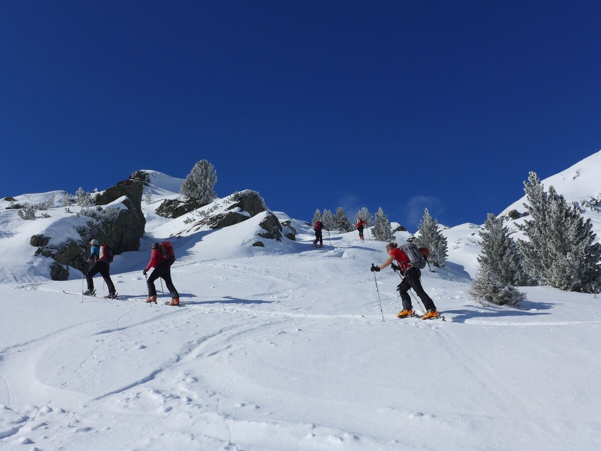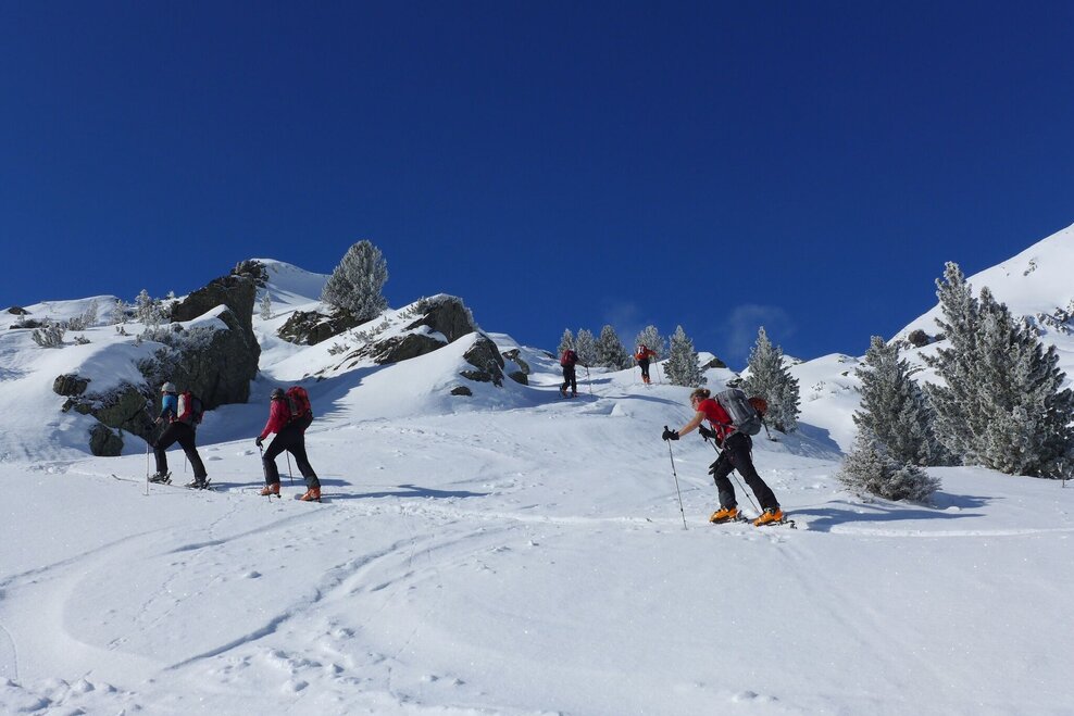 - Ski touring equipment consisting of skis/splitboard, skins, poles and possibly crampons.
