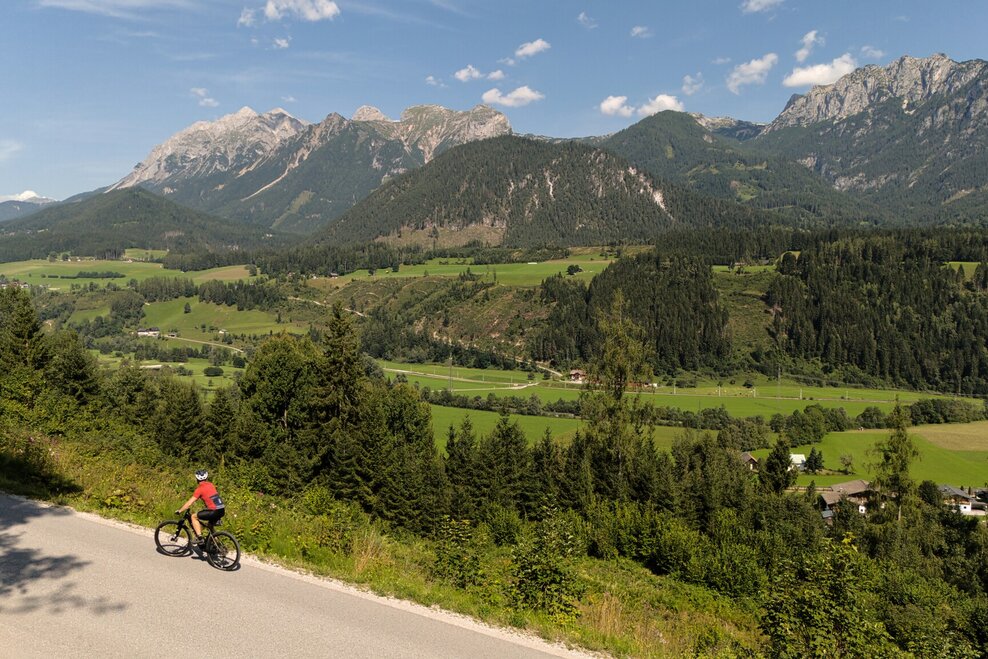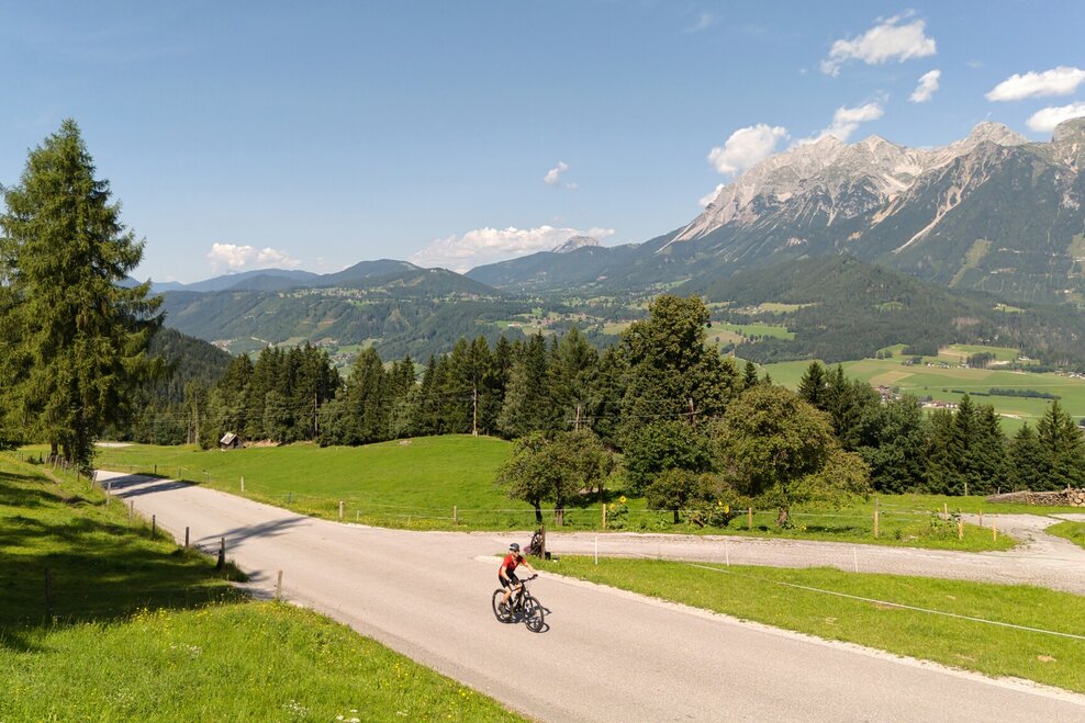 This diverse circular tour starts at the valley station of the Hauser Kaibling cable car and leads via Oberhaus, Stöcklhütte, and Knapplhütt’n into the idyllic Gumpental valley. After a short stop at the Stanglalm for refreshments, the route continues on mostly flat terrain to Gumpenberg, passing Hotel Höflehner. A steep descent takes you down to Ruperting before the loop ends back in Haus im Ennstal.