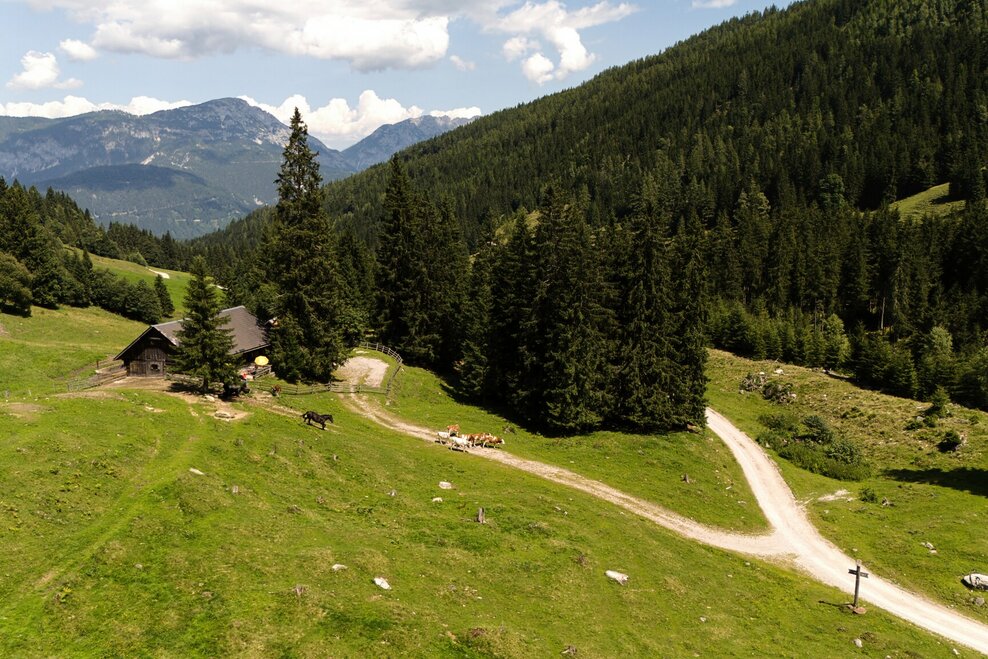 Once in Gumpental, a short detour to the Stanglalm is well worth it – the perfect place for a snack or a short break. The route then continues almost entirely flat to Gumpenberg, passing the renowned Hotel Höflehner. A steep, paved descent follows down to Ruperting, after which a relaxed final section takes you back to the starting point in Haus.