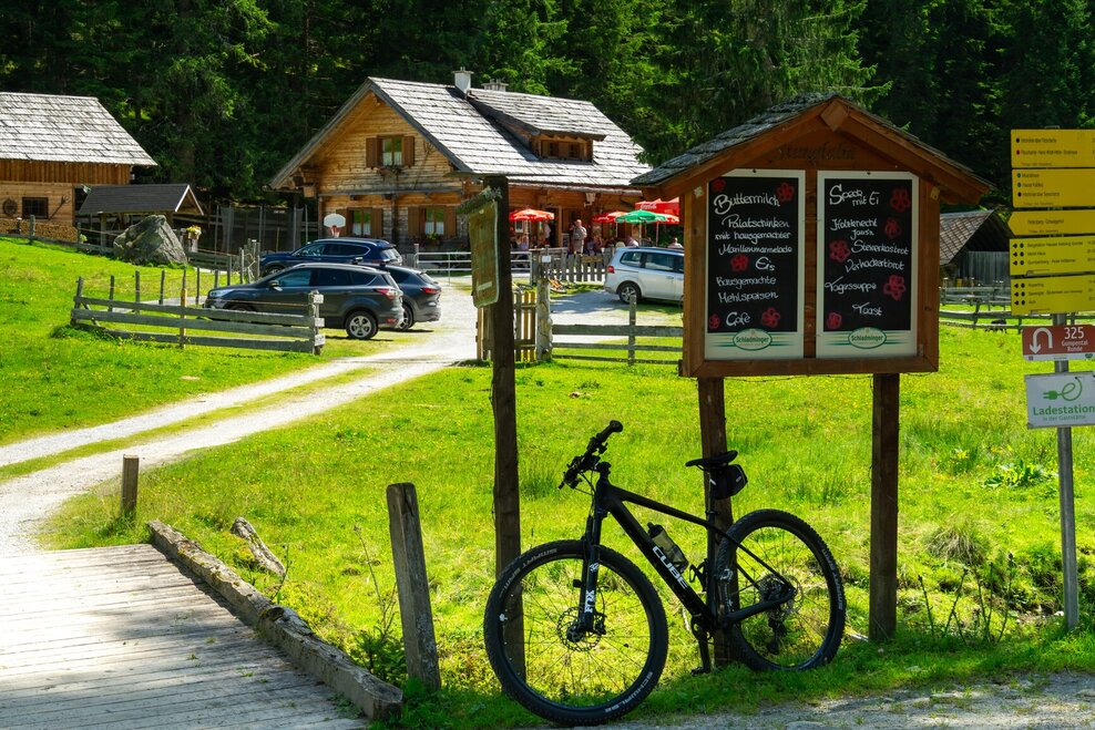Chargers for Bosch e-bikes are available at the Stangl Alm (Gumpental) and the Seewigtal Stüberl (parking area Steirischer Bodensee).