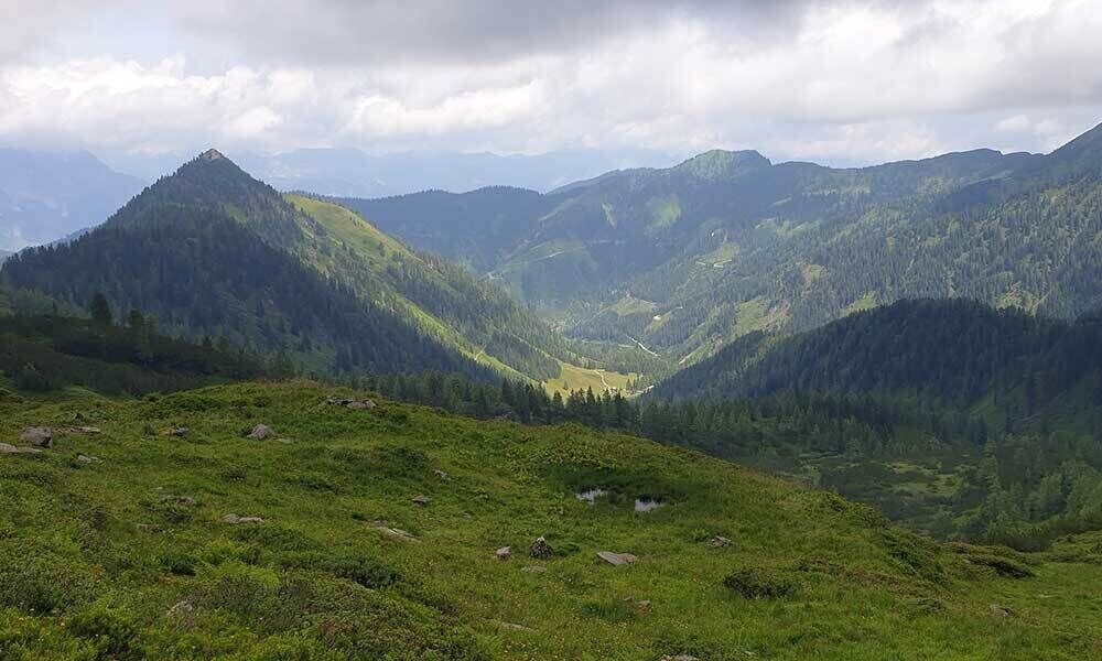 Weitere Möglichkeiten entlang des steirischen Landesrundwanderweges in Richtung Westen (Plöschmitzzinken 2 095 m und Kühofenspitz 2 145 m) und in Richtung Osten (über den Lämmertörlkopf 2 046 m und das Lämmertörl 1 920 m durch das Ramertal zurück zur Englitzalm).