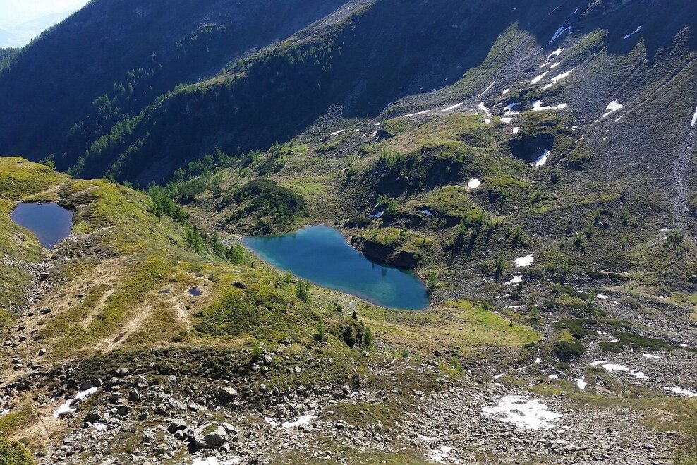 From the top station of the Schladminger Tauern cable car or the 8-seater chairlift Kaiblinggrat to Hauser Kaibling, the trail heads south past the transmitter mast and over a striking grass ridge up to the summit cross of Hauser Kaibling (2,015 m). Up here, the view of the Höchstein gives you a small foretaste of the experiences of the next few hours. Now we go south on the free ridge and through mountain pine fields down to the Rossfeld saddle. We continue on trail no. 780 under the Bärfallspitze to the Seescharte. When you reach the saddle, you can see the lake "Moaralmsee", which is located deep below. A narrow and very steep path leads down to the lake. However, our path leads over a steep step up to the Kaiblinglochscharte. After a short flat stretch it gets steep again - under the Zwiesling there are some wire ropes for protection. The last meters to the Gifpel are once again very demanding and lead over rocky climbing terrain to the cross. Once at the top, the efforts of the climb are quickly forgotten, the view from all sides is indescribably beautiful. After an extensive rest at the summit, the route continues on the northeast ridge down to the Filzscharte. The path leads over rough block terrain, with intermediate safety measures but without major difficulties downhill. At the Filzscharte (2,213 m) the path branches off to the right to the Hans-Wödl-Hütte. Our next destination, the Moaralmsee, is on the left side, we reach the beautifully situated lake after the descent on path no. 781. Impressively the massif of the Höchstein is reflected in the water of the lake. If you follow the little stream that leaves the mountain lake, you will reach the alpine pastures in the Gumpental. Our route, however, leads us along the steep slopes of the Bärfallspitze, which are covered with grass and bushes, back to the Rossfeld saddle (path no. 45). From here we take the shortest way following the marking No. 780 to the starting point at the cable car top station.