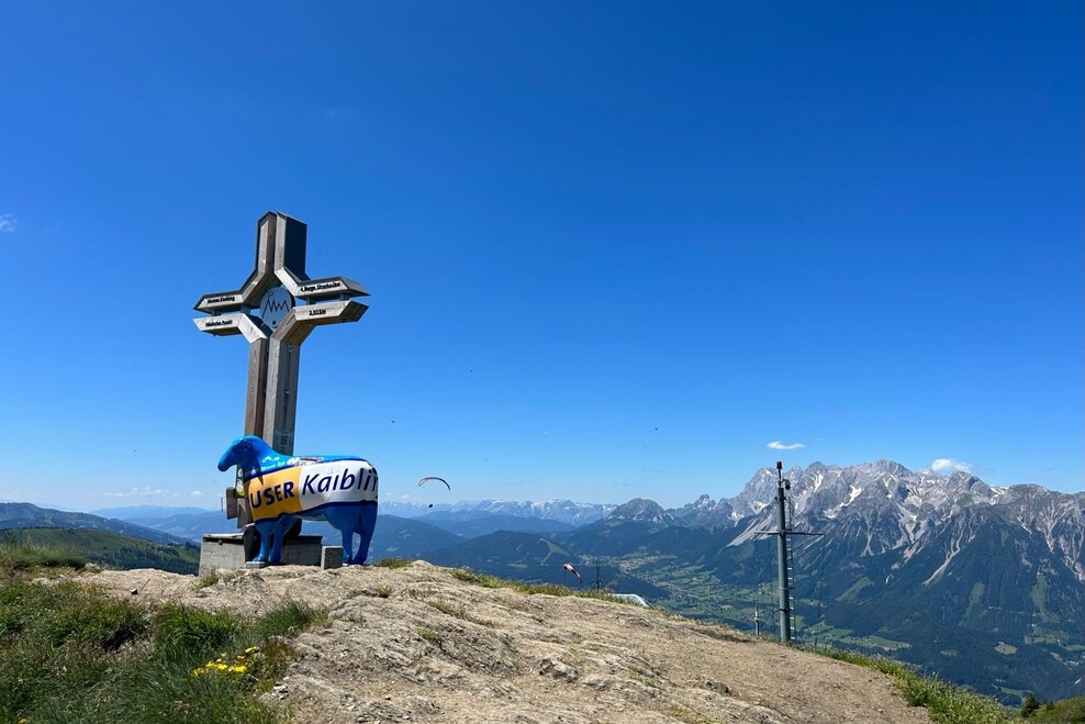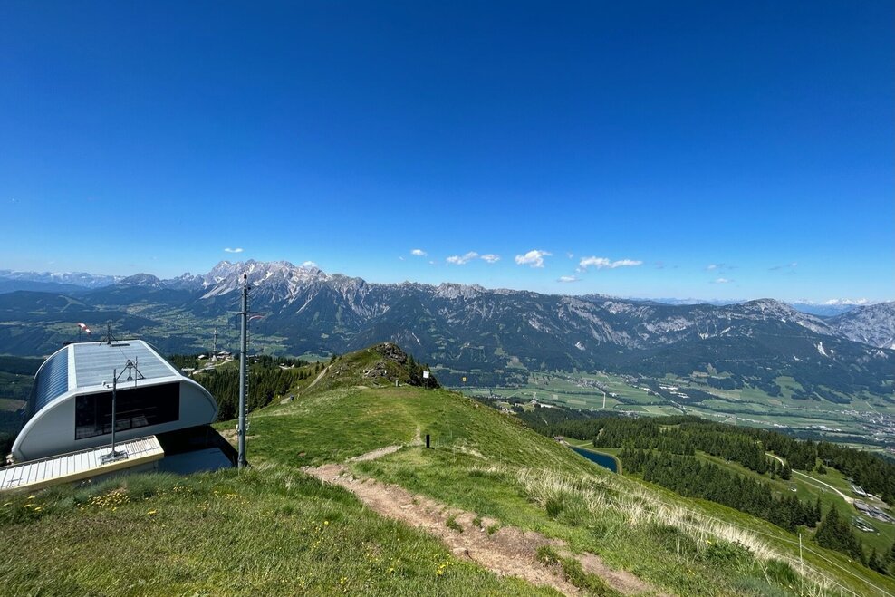 From the mountain station of the cable car to the Hauser Kaibling summit and directly back to the mountain station (time required: approx. 50 min.)