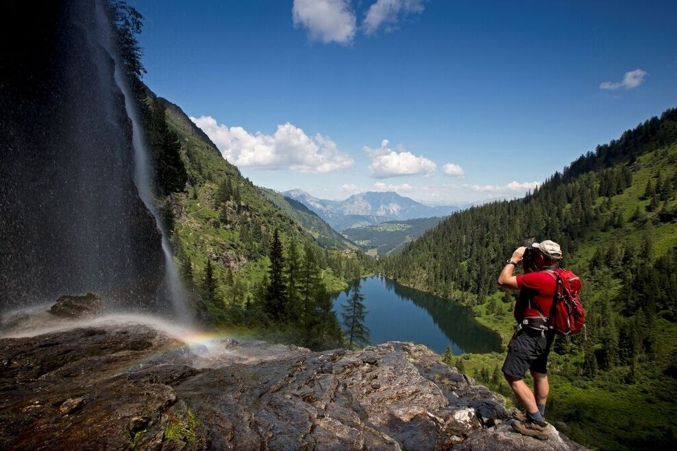 Via Ruperting near Haus im Ennstal or Aich/Gössenberg, we reach the parking lot in the Seewigtal valley via a toll road. We walk for about 15 minutes on a wide path along the stream to the Steirischer Bodensee. Once at the end of the lake, the trail continues via the ascent with the number 782, which leads over a waterfall to the Hans-Wödl-Hütte at the Hüttensee. The hut is about 1 hour's walk above the Steirischer Bodensee and is therefore an ideal destination for a day trip. After the hike, we can enjoy the view of the Hüttensee and the Hochwildstelle from the terrace and fortify ourselves with the farm's own delicacies of beef, pork and brook trout. The hut is also a great starting point for crossings and high alpine tours. The way back is via the same route and from the Steirischer Bodensee/Seewigtal parking lot you can take the 976 Steirischer Bodensee bus back through Weißenbach bei Haus to Haus im Ennstal or to Schladming.
