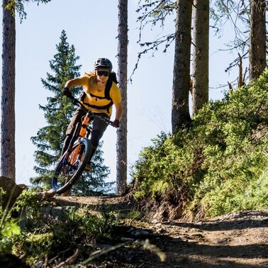 The Hochalm Trail impresses with its natural design. Elements such as rock slabs and stones, as well as the natural curves, make this line the ideal route for trail beginners who are looking for a new challenge after the blue sections.