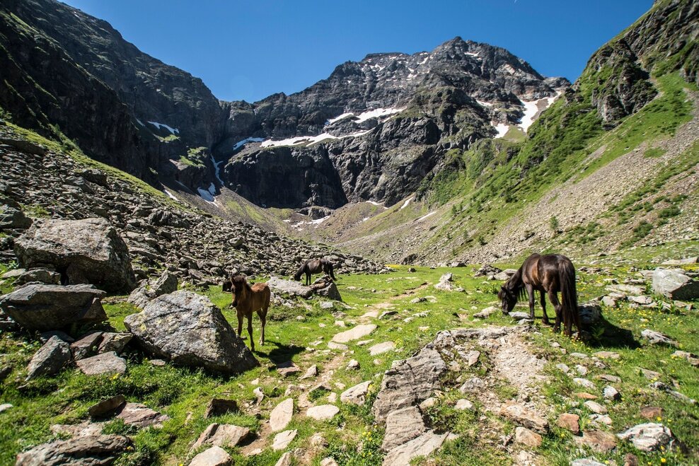 Changes in weather patterns, quick falls in temperature, thunderstorms, wind, fog and snow are some of the dangers that can be encountered on a hiking tour. Hosts of alpine huts and mountain refuges have a lot of experience in the mountains and can give good advice about weather and the trails. Poor equipment, overestimation of one's own capabilities, carelessness, poor personal constitution and/or wrong judgement can lead to critical situations. In case of thunderstorms: avoid summits, ridges and steel ropes.