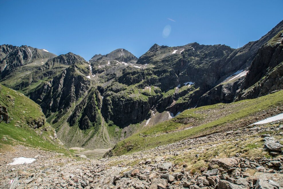 Now follow the trail signs n° 702/778, ascending steeply over scree to Gollingscharte ridge. Snowfields are possible here to the mid of summer. In several switchbacks the trail takes you up to the ridge, which is a good spot for a break.
