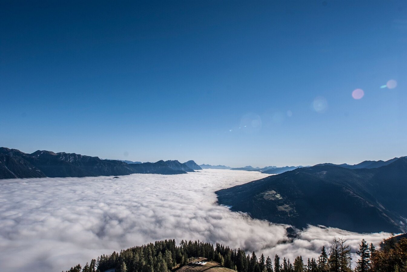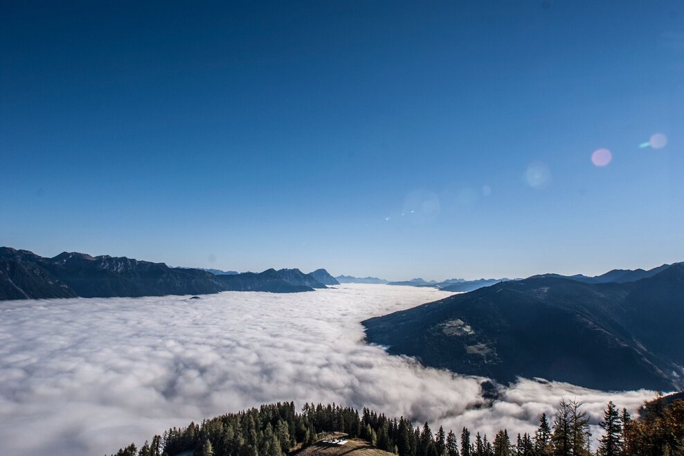 Changes in weather patterns, quick falls in temperature, thunderstorms, wind, fog and snow are some of the dangers that can be encountered on a hiking tour. Hosts of alpine huts and mountain refuges have a lot of experience in the mountains and can give good advice about weather and the trails. Poor equipment, overestimation of one's own capabilities, carelessness, poor personal constitution and/or wrong judgement  can lead to critical situations. In case of thunderstorms: avoid summits, ridges and steel ropes.