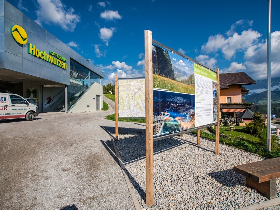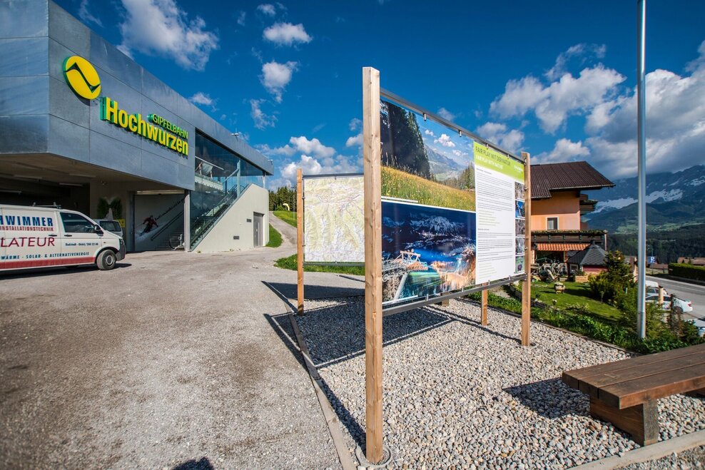With the Planai buses from Schladming (Planet-Planai, Lendplatz) or Rohrmoos (Rohrmoos-Zentrum) to the valley terminal of the Hochwurzen cable-car - bus stop "Gipfelbahn Hochwurzen".