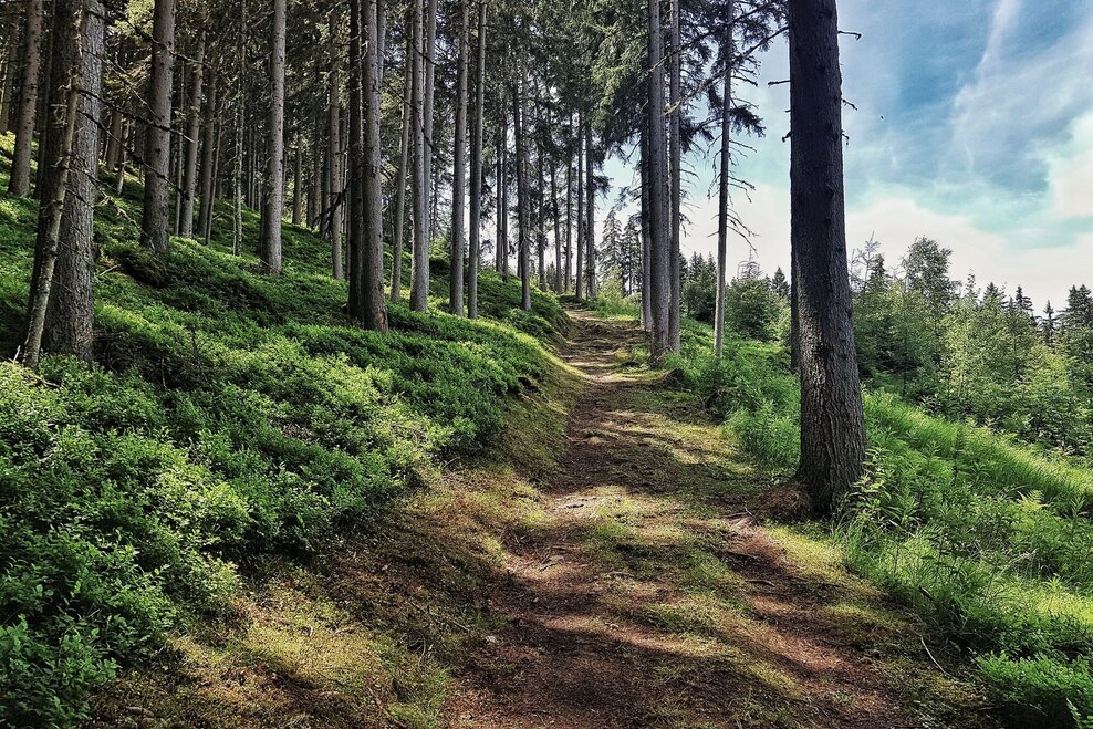 The trail now takes you up through the forest, while you cross two forest lanes and Hochwurzenstraße road (CAUTION: Mountain Gokarts are driving downhill here quite fast!). Again, you run across a meadow (ski slope), back into the forest and onto another meadow (the "FIS" ski slope in winter), which you follow uphill for several hundred meters. In a bend of the "ski slope" you branch off right and continue on a forest trail with many roots and smooth forest floor. Shortly before the summit a couple of hairpins take you up the last part to Hochwurzenhütte.