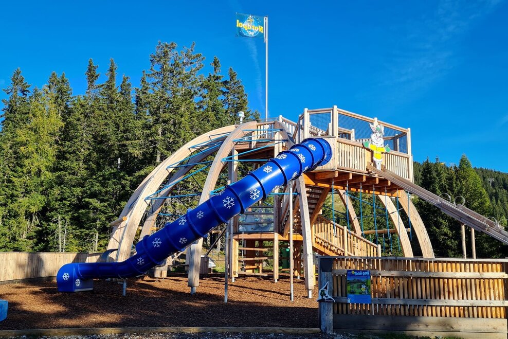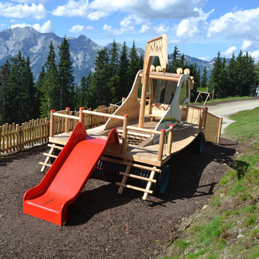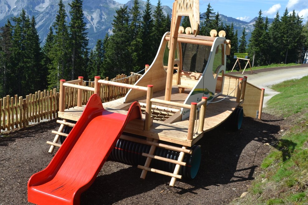 Fun, adventure and play are waiting for the kids on top of the Planai in Schladming. The 1.5 km long loop trail for families starts at the mountain terminal of Planai cable-car and takes you and your loved ones to giant slides, climbing towers, swings and to a small water world.