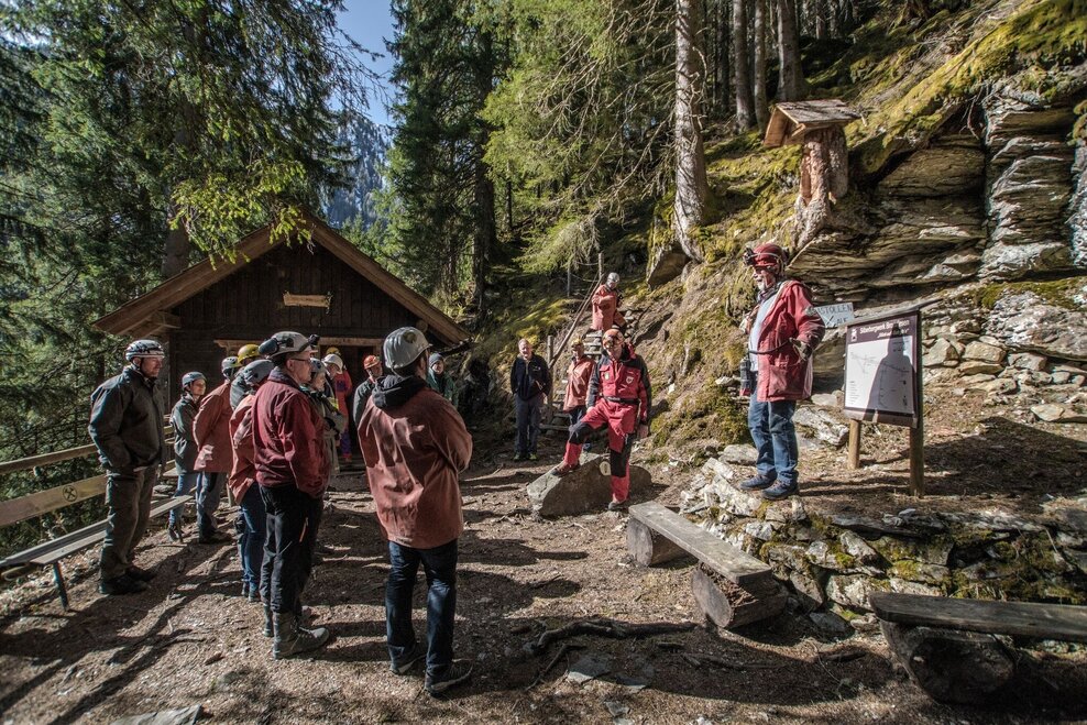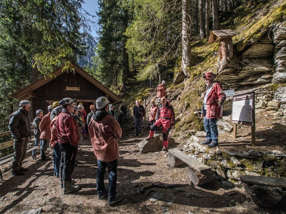 The tour starts at the car park in Hopfriesen near the bus stop. Together we walk up the mountain for about 25 minutes to the entrance of the former silver mine tunnel. Visitors are given a helmet, protective jacket, torches and some carbide lamps in the entrance parlour. Relics from the mining era are on display in the narrow tunnels.
