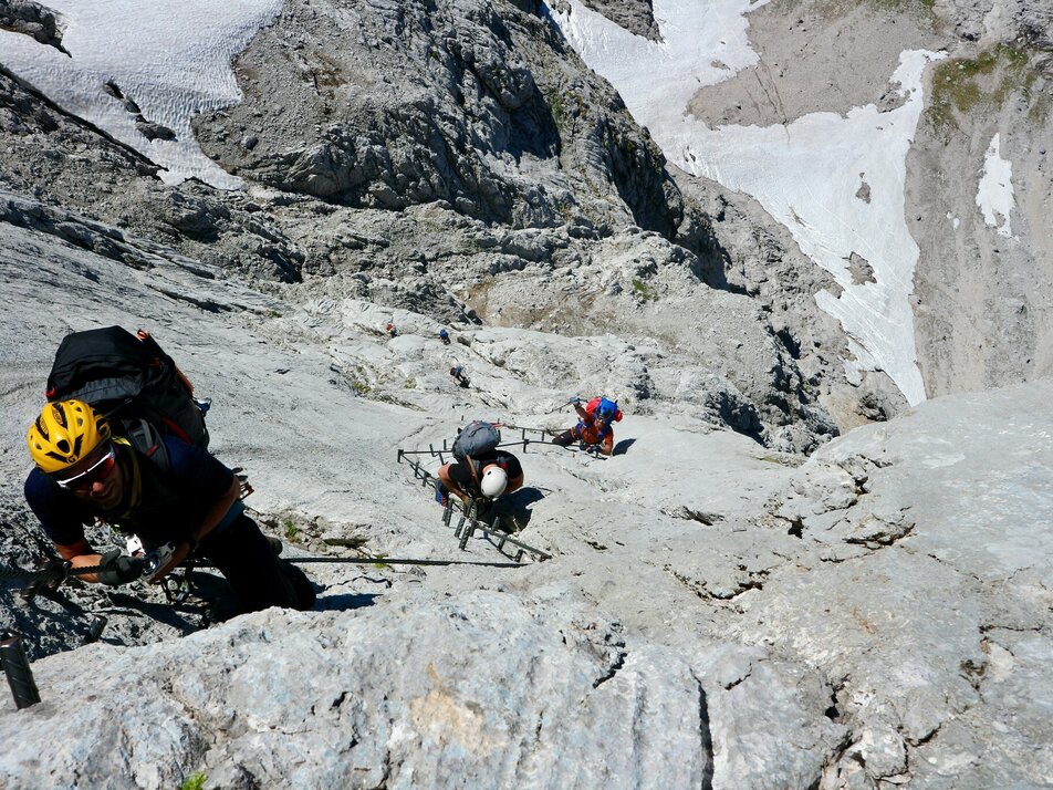The physical demands should not be underestimated, compounded by alevations over 2000 m above sea level. Especially in the middle section, there is a danger of rockslides! The via ferrata ends directly behind the Seethalerhütte on the Dachsteinwarte. This via ferrata is not suitable for childern or inexpirienced climbers.