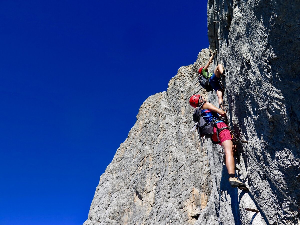 The Johann Klettersteig is an especially interesting and diverse, though long and very difficult via ferrata. The beginning of the via ferrata is a key section, forcing many a climber to turn back, though the rest of the route is very manageable. This via ferrata requires very good physical condition! A 700 m steel cable and more than 250 pegs accompany you up this difficult rockface.
