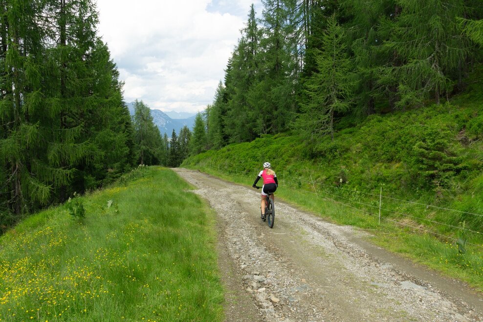Afterwards, the long descent through the Gumpental leads down to the Styrian Bodensee. From there, the route continues on a paved road towards Ruperting and finally gently downhill back to the starting point at the valley station. This tour offers both athletic challenges and impressive views.