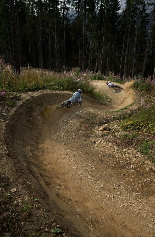 After the middle station, the Kessler Line is the connection to the Rookie Downhill! These tracks are characteristically very identical: many steep curves, some root passages and jumps characterize this line!