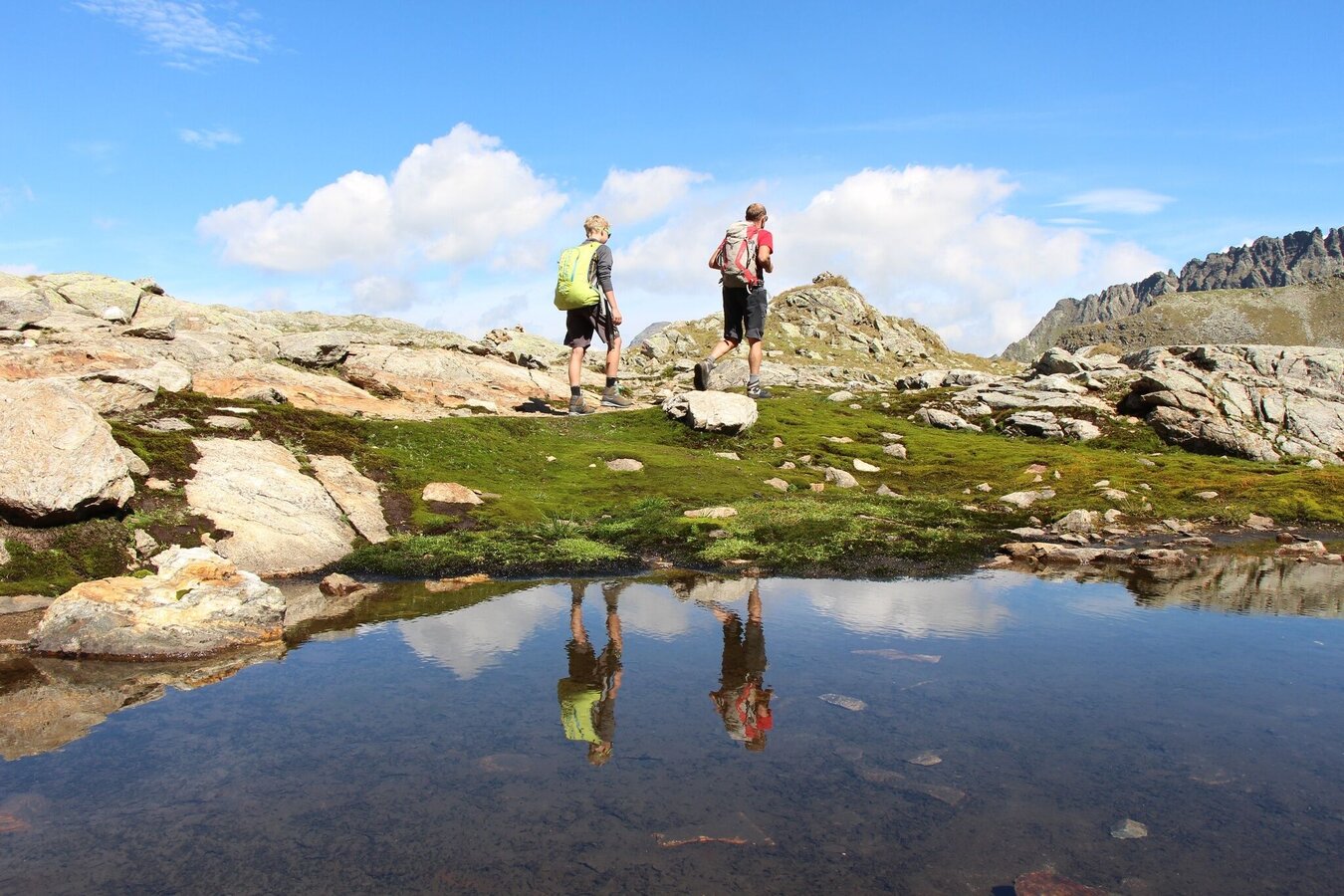 Changes in weather patterns, quick falls in temperature, thunderstorms, wind, fog and snow are some of the dangers that can be encountered on a hiking tour. Hosts of alpine huts and mountain refuges have a lot of experience in the mountains and can give good advice about weather and the trails. Poor equipment, overestimation of one's own capabilities, carelessness, poor personal constitution and/or wrong judgement can lead to critical situations. In case of thunderstorms: avoid summits, ridges and steel ropes.