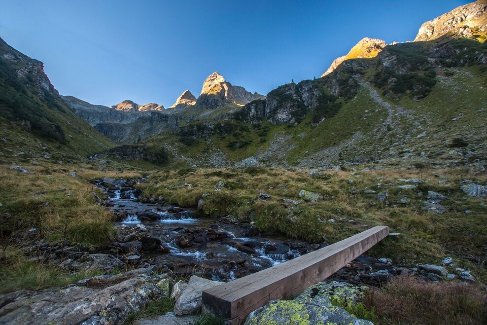 Starting from Almgasthaus Riesachfall at Seeleiten car parking you hike through Steinriesental valley to Gollinghütte mountain chalet. Via many steps and rocky outcrops the trail leads to the Greifenbergsattel mountain saddle. A small lake, with the summit of Hochgolling in the backdrop, is a first impressive sight.