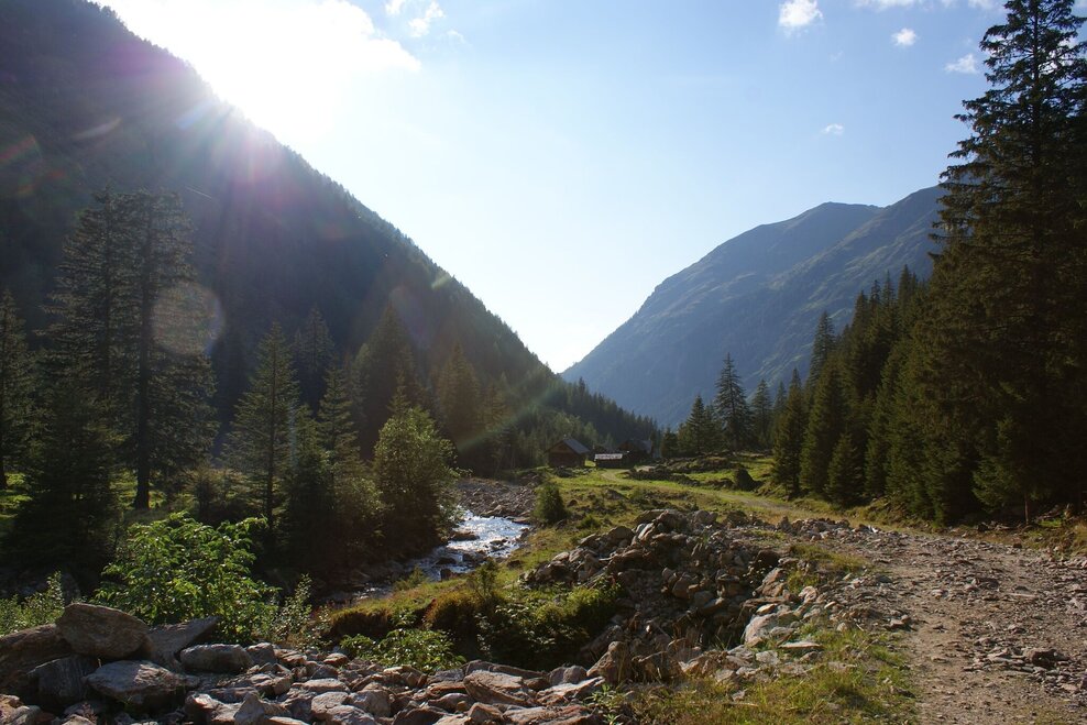 The further path runs steeply down across a barrier terrain to the Lämmerkare Corries and across a steep meadow to the Preintalerhütte and Waldhornalm chalets at 1,656 metres. The descent to the Kotalm Chalet starts rather steeply, after which it is mostly level until the Kaltenbachalm and Gfölleralm Inns on the Riesachsee Lake. The last descent on this long walk leads across the forest road down to the starting point at Almgasthaus Riesachfall at the Seeleiten Car Park.