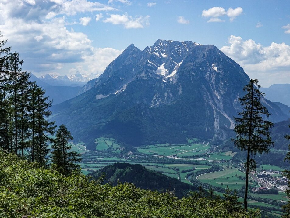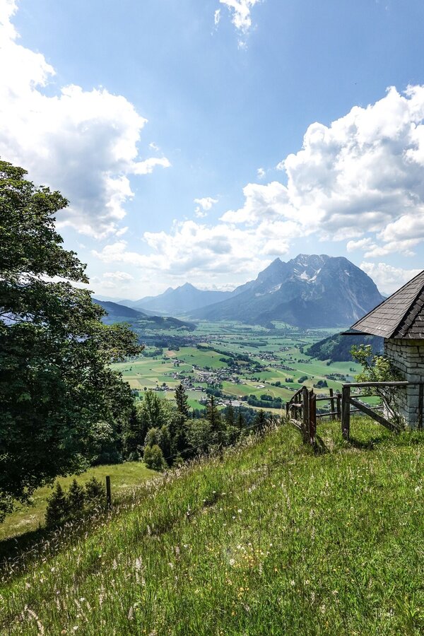 Through the town center and after 500 meters up to the Tachenberg. Turn left over the asphalt road and after 500 meters turn right towards the forest. Beautiful forest soil takes us up. Then again and again on forest paths and hiking trails we go up to Kohlanger. Quite unspectacular we reach the summit. For the perfect view of the Enns Valley, the variant on the Hohe Trett +6.3 +317hm is ideal. If you have had enough, you can walk down to the Stalingradkapelle and enjoy a fantastic view. Always recommended with morning or evening atmosphere. On sunken paths it goes quickly down to Ritzmannsdorf and then via Tachenberg back to the starting point.
