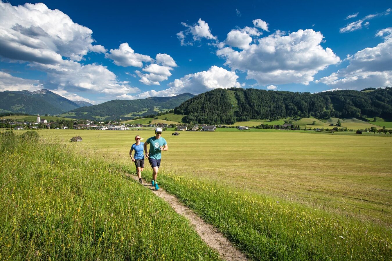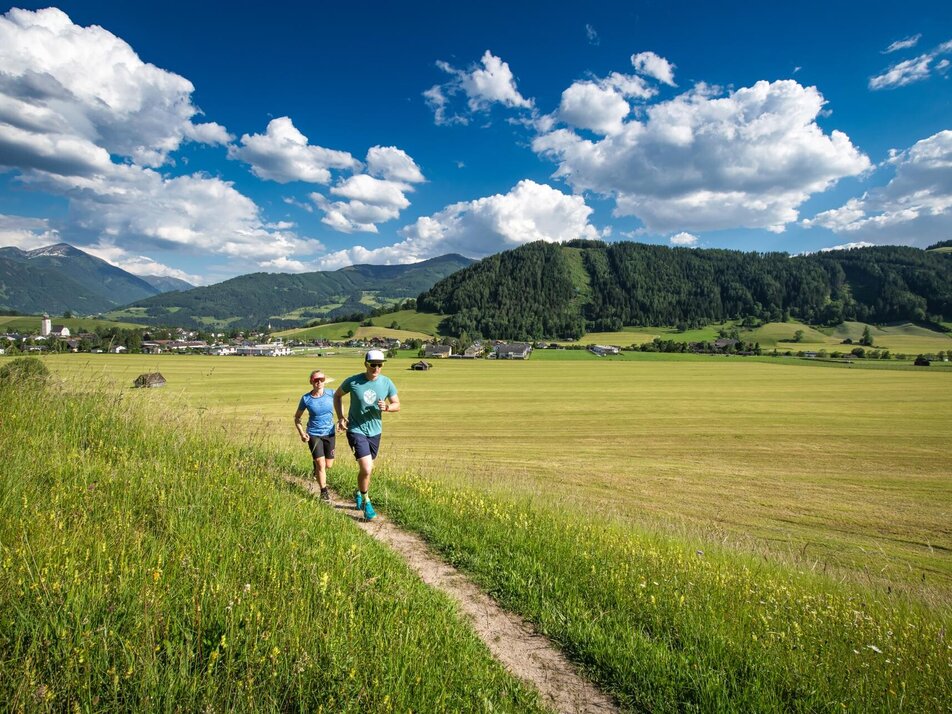 This shorter and leisurely loop also starts in the centre of Grömbing. The route heads slightly uphill to the east via the Thoma farmstead to the Krahberg settlement before returning to Grömbming along the Ennstal main road.