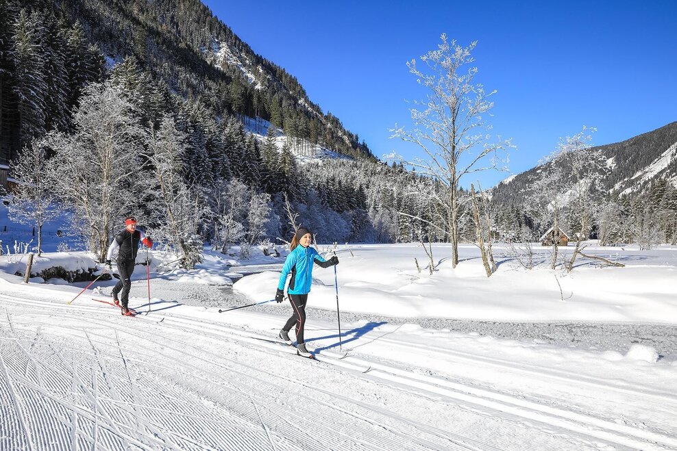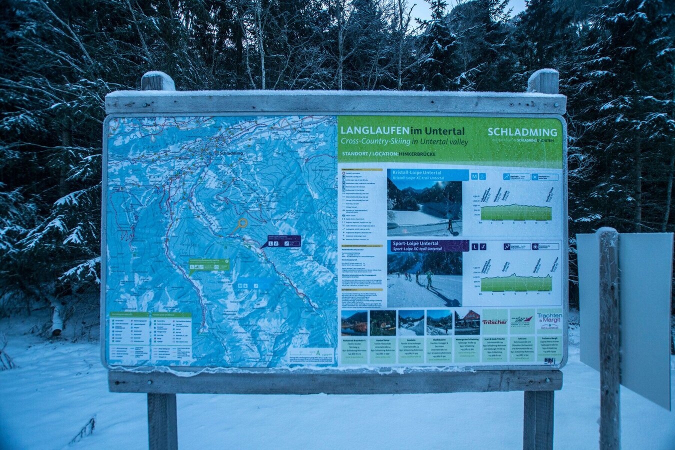 Wonderfully grommed classic cross-country trail along the Untertal valley, flanked by the impressive mountains of the Schladming Tauern range. Especially in the morning you get a taste from where the tracks got their name.