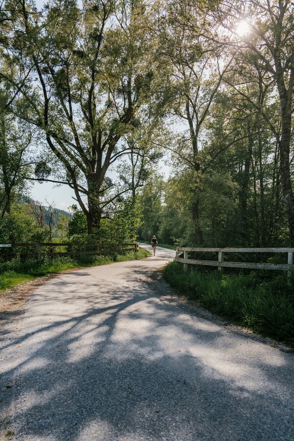 Ideal starting points and entry points: Schwarzer Weg, Sallaberg bridge, Windsack Bundesheer, campsite, Schlattham Fitness requirements: The length of the route and the slight inclines require runners to be in average to good physical condition. Not a route for beginners.