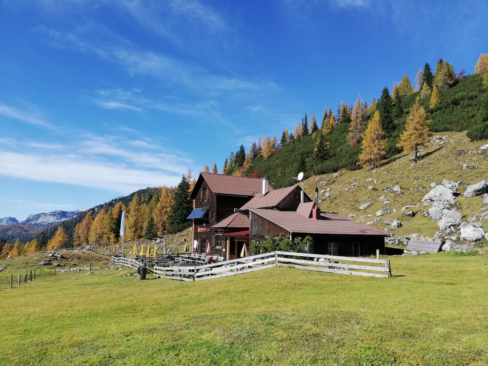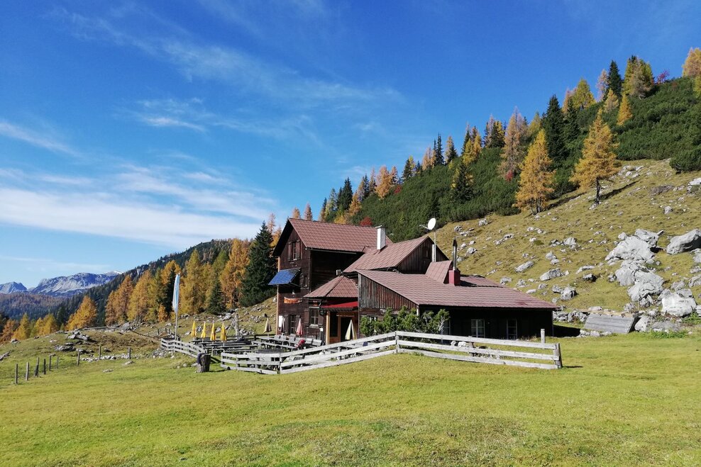 The hike on easy paths over luscious mountain pastures leads us up along the eastern slope of Hochtausing to the Langpolten Alm. For surefooted mountaineers, Hochtausing peak (elev. 1,823 m) is certainly a temptation, because its rocky ridge offers a fantastic panoramic view (via ferrata on the western side). We continue through the Langpoltner Klamml on the south-facing slope to the Thank Heavens Bench, which provides an impressive view. Now we hike easily downhill through a sparse larch forest to the Hochmölbing Hütte. There is an alternative for our return hike: at the trail crossing at the Langpolten Alm, path No. 7 (also 209), branches off to the right and leads between Hochtausing and Bärfeichtenmölbing to the Bärfeichten Alm. From here, we begin our circumnavigation of the Hochtausing, which is constantly on our left-hand side (marking no. 7). Pathways take us over the Grafenhube, followed by a virtually level stretch almost all the way back to Schönmoos.