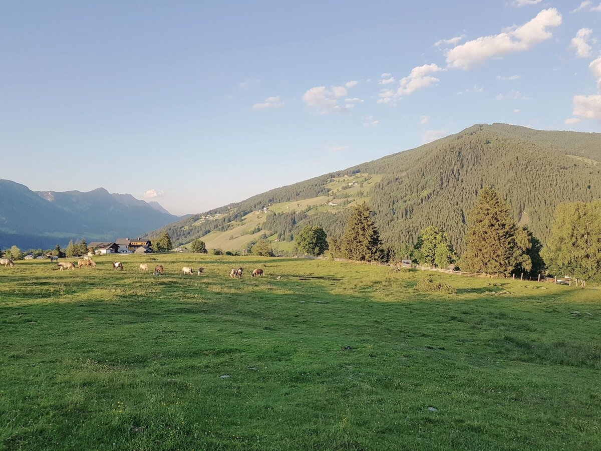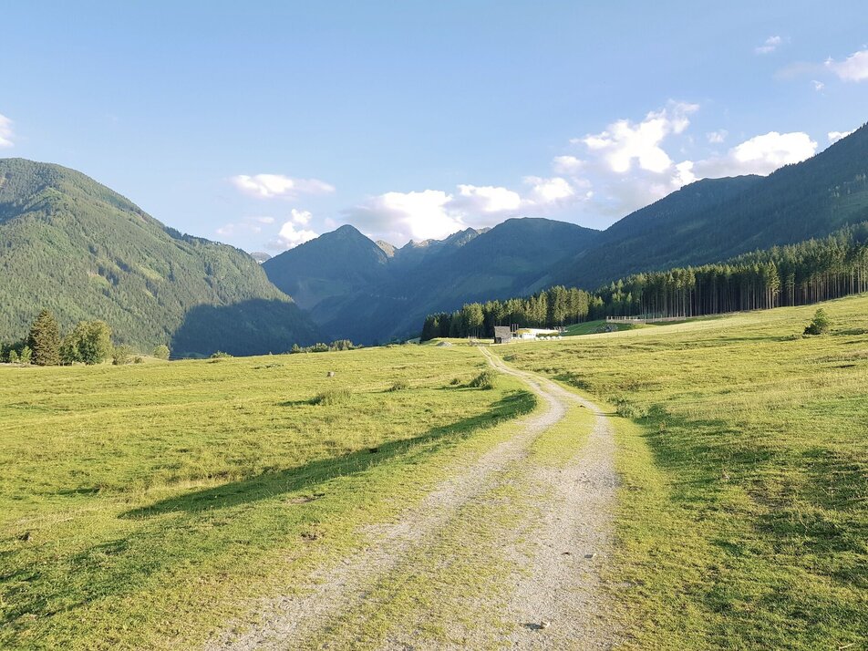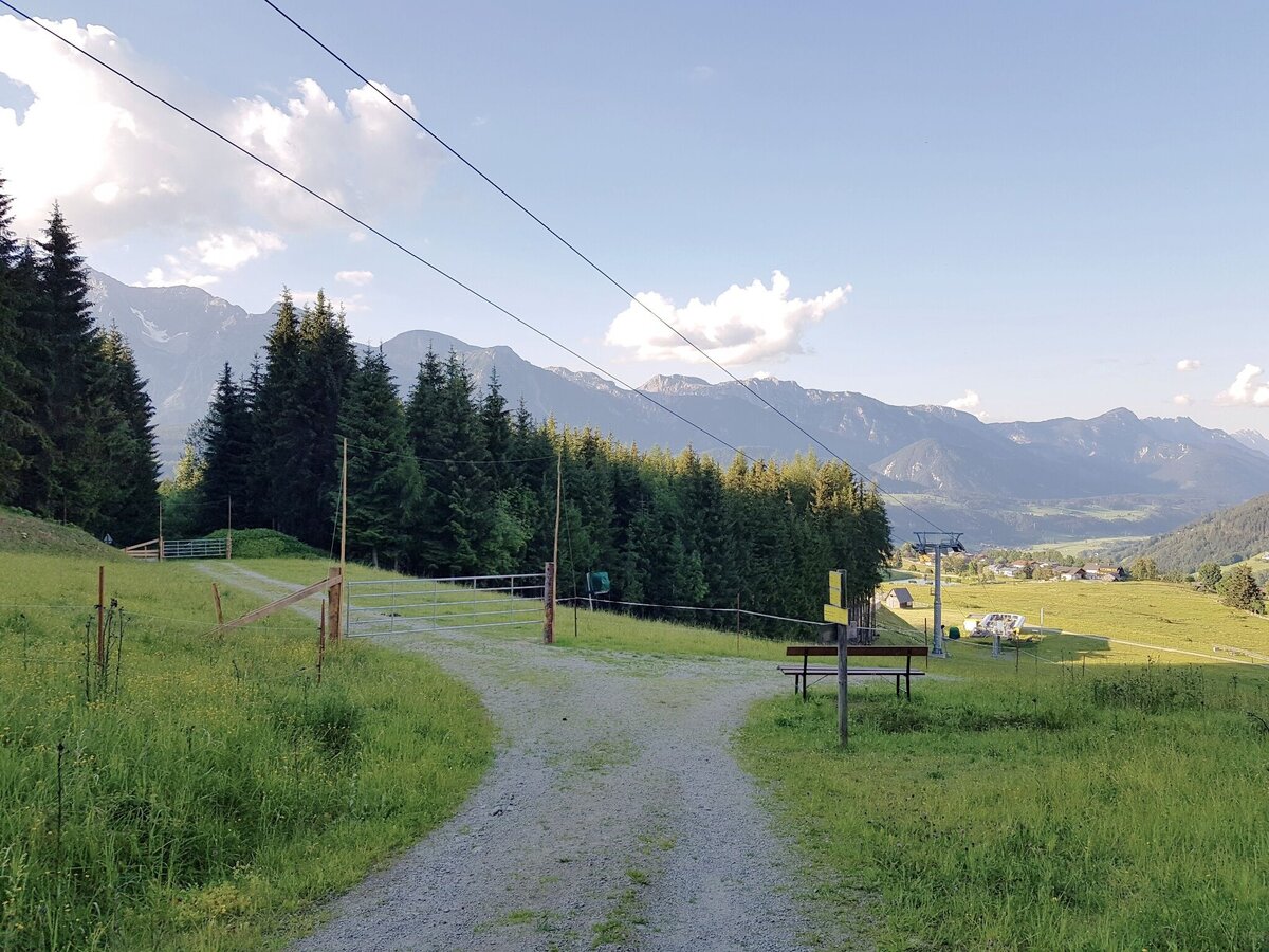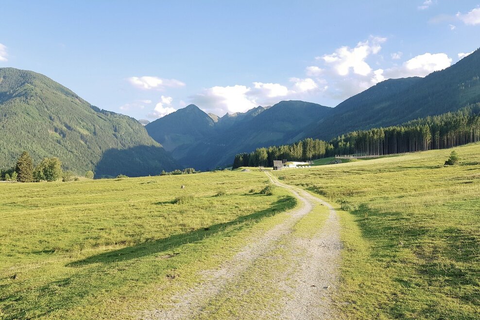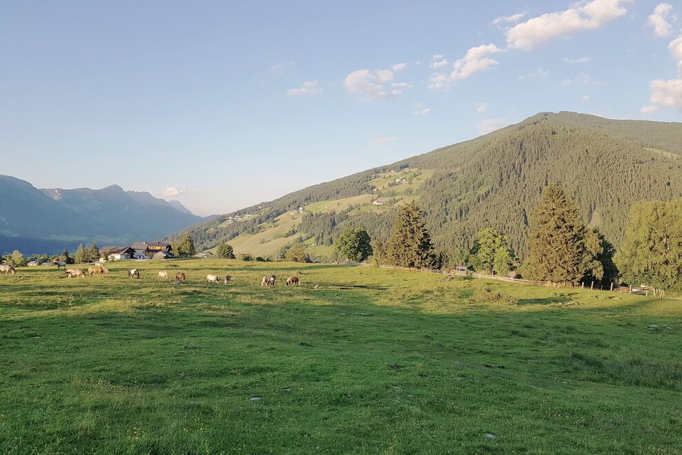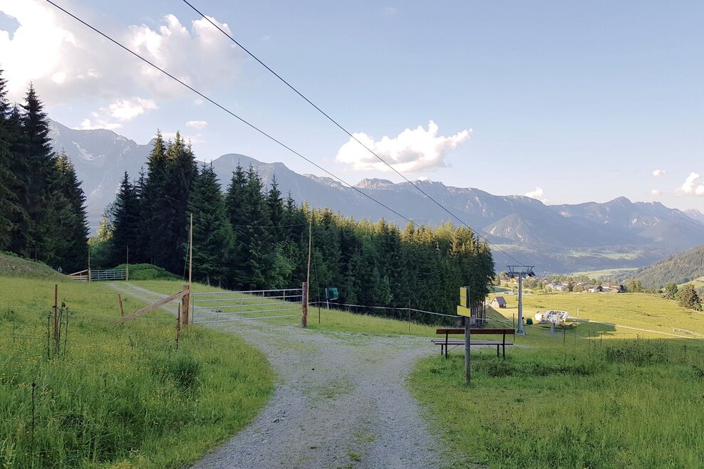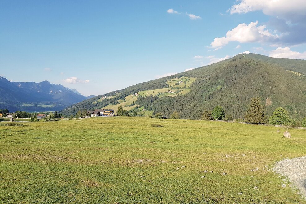 From the centre of Rohrmoos, walk uphill along the pavement for approx. 300 m until the Knappenweg branches off to the left. Just a few metres further on at the Schußbühel, you feel as if you have been transported to a different landscape: a wide alpine pasture area opens up to the south and the meadow path leads through the middle of the lush pastures of the Rohrmooser Frei.