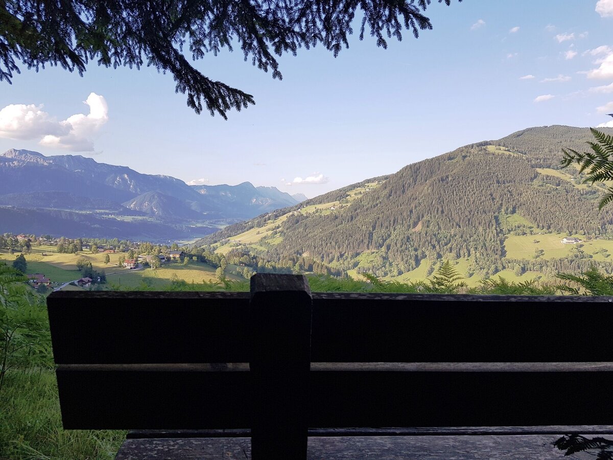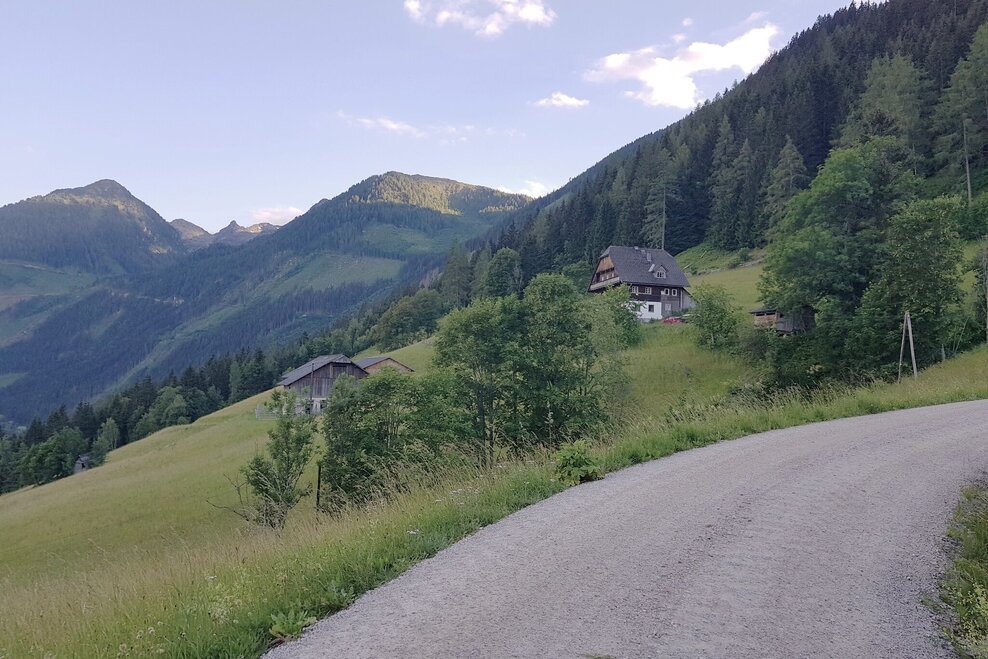 As you walk gently downhill towards the Obertal valley, you should enjoy the beautiful views of both the Untertal and Obertal valleys. At the vlg. Sonnleitner estate, you reach the Rohrmoos-Südweg/Knappenweg crossroads and hike uphill along the road to the vlg. Pocher where you reach the Johannahöhe and the Schwammerlweg.