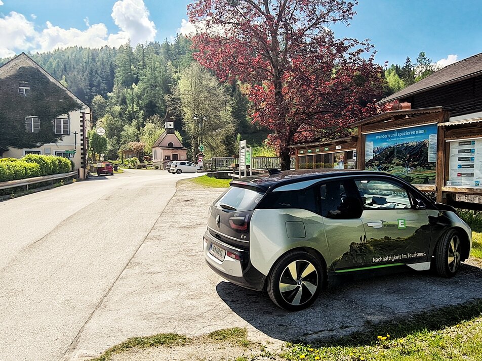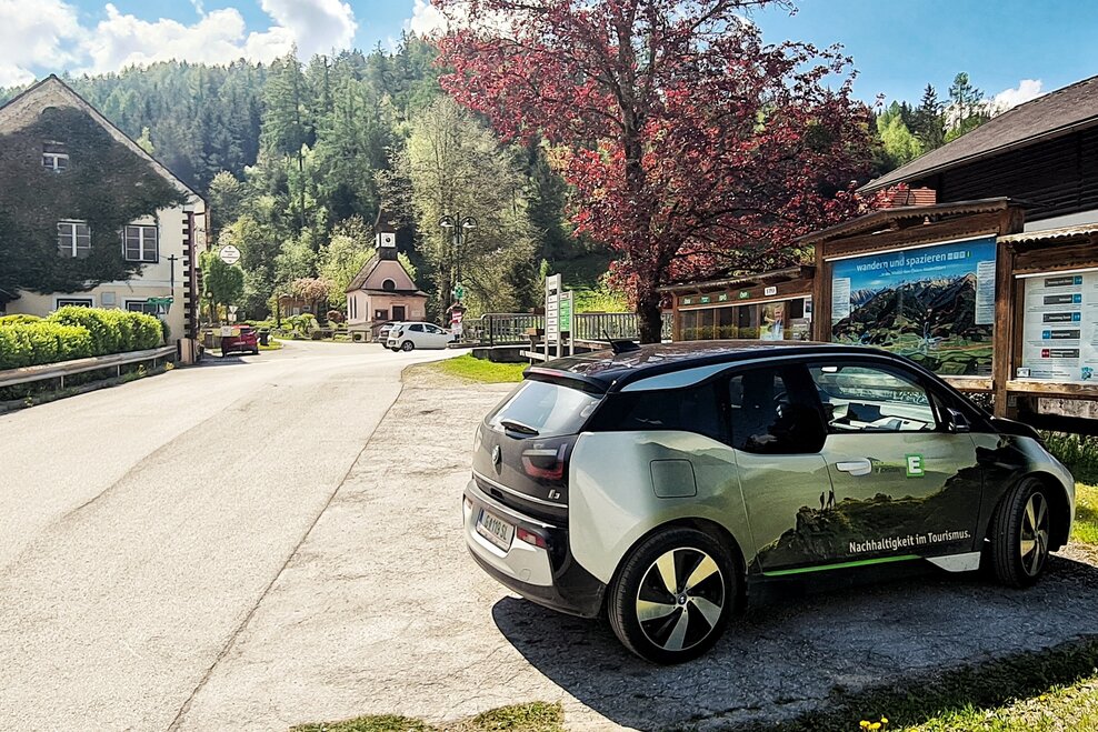 In Espang turn off the B320 federal road onto the state road L734. Two kilometers to Niederöblarn, then turn left into the village and along the main road to the car park opposite the Grimmingtor inn.