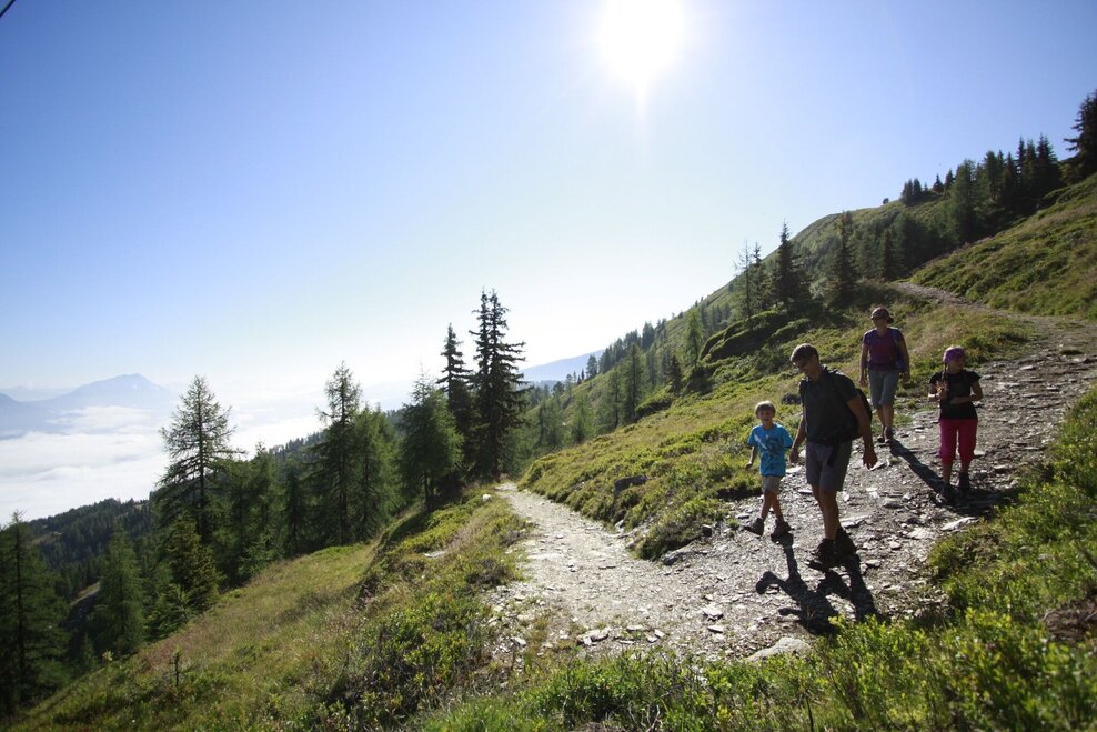 The great difference in altitude can be comfortably overcome with the Schladminger Tauern cable car or Hauser Kaibling cable car & 8-seater chairlift Kaiblinggrat. From the top station of the cable car, the path leads along the Schafsinn-Rundweg to the Rossfeldsattel. From there follow the signs. In approx. 45 min. you reach the Bärfallspitze and enjoy the wonderful panoramic view into the valley. The descent is via trail no. 780 to the Kaiblingalm. From there it is a comfortable forest path back to the top station.