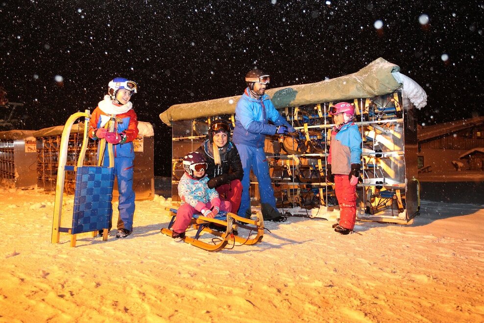 You buy a ticket at the valley station and pick up your sled directly at the mountain station Rittisberg after the ascent (120 sleds available). You can ride alone or in pairs with one sled. After the downhill run, simply return the toboggan at the bottom station.