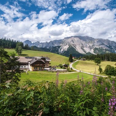 Von Westen: Tauernautobahn A 10 bis zum Knoten Ennstal - Abfahrt Richtung Graz/Schladming - rund 20 km auf der Ennstal-Bundesstraße bis nach Schladming - Abzweigung Ramsau