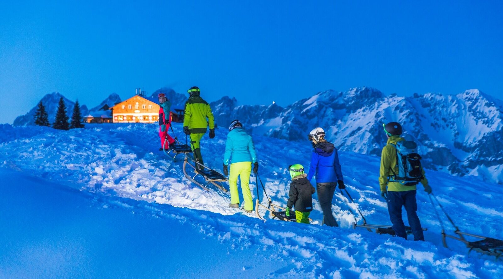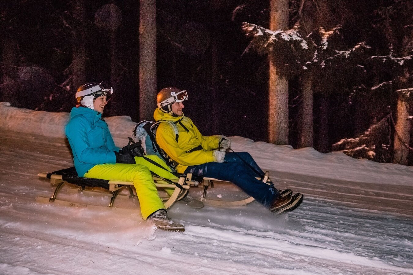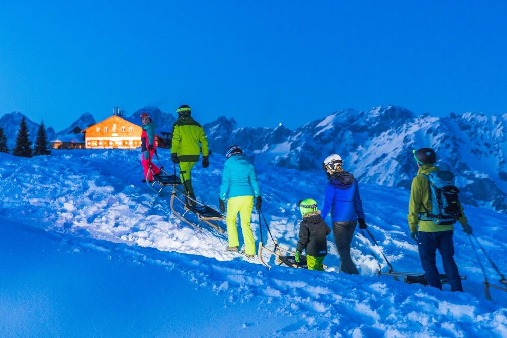 The Gipfelbahn Hochwurzen cable-car takes tobogganists up to the summit of Hochwurzen. From there the track takes you back to the valley terminal The cable car offers enough space in its pods to transport the sleds, which can be rented close by the valley terminal. The starting point of the sled run is located directly on the Hochwurzen summit.Sledding is a unique, romantic pleasure on two runners in the middle of nature and winter. Stopping off for food is part of it – and you won’t miss out on Hochwurzen. The lodges are well distributed between the starting and finishing points of the sled run and offer enough space even for large groups!