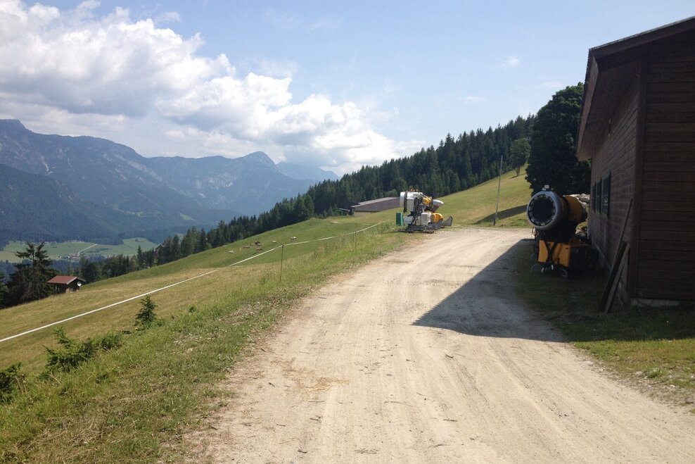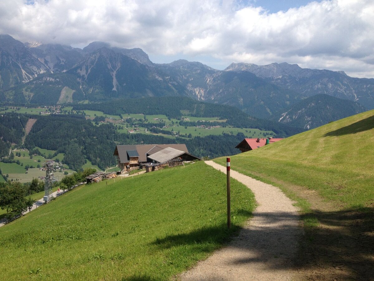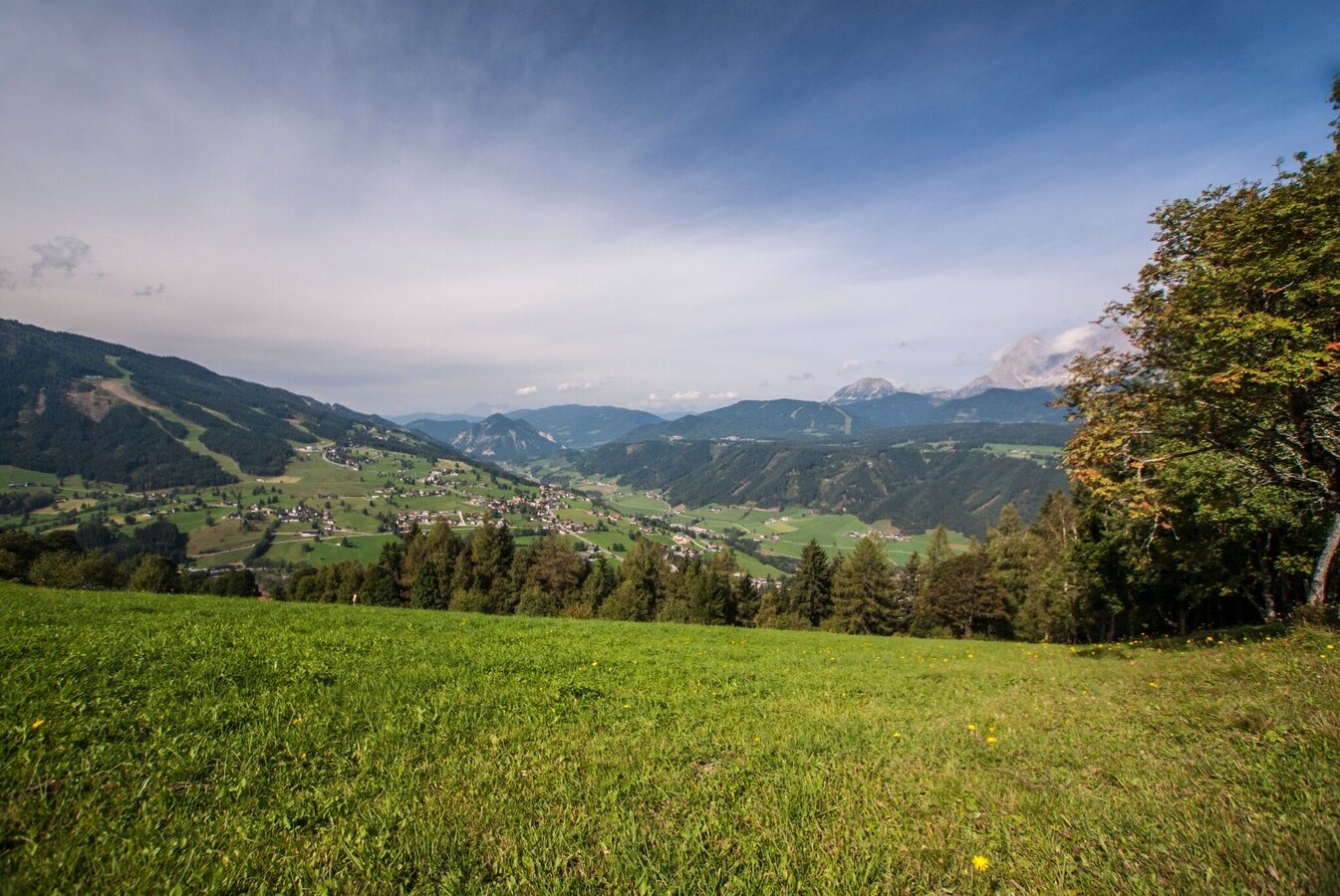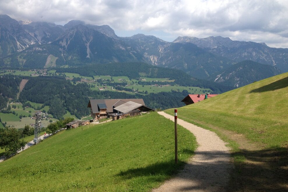 The Erzwegrunde is ideal for an evening walk, as the altitude means you can enjoy the sun in the mountains all the longer. The hiking trail is at an altitude of between 1,050 and 1,350 metres above sea level and offers a magnificent view of the Ramsau plateau and the Dachstein massif to the north.