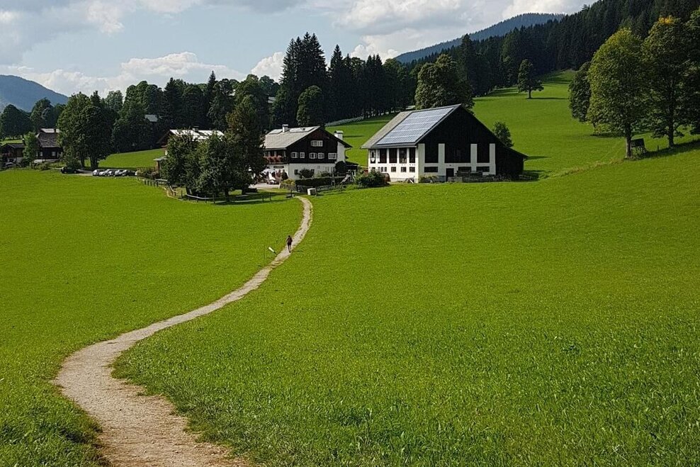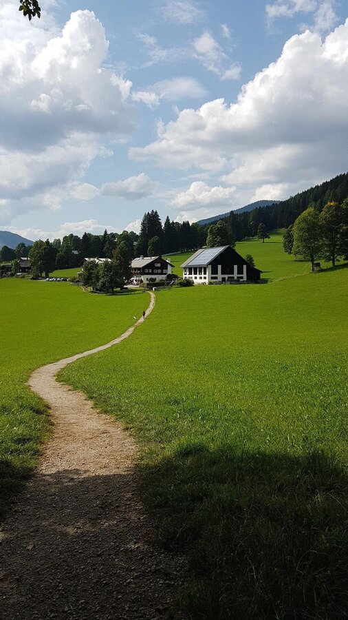 Beautiful, sunny and almost flat panoramic trail. From the Event center first to the Protestant church, past the cemetery to Pension Ischi and right to the Mayerhofer farm. Shortly before the farm, the Panorama Allee turns off to the right. A path suitable for strollers with beautiful old maple trees, benches and a wonderful clear view of the Schladminger Tauern. From the Biohotel Ramsauhof shortly on the road downhill and left to the Gruberstube and further to the Pension Alpenhof. From the Alpenhof guesthouse, the circular trail leads a few meters down the road to the right, then left past a few houses, slightly downhill (partly on a root path) to the Angererhof farm. At the Steinacker house cross the road and go straight on to the Hofrat Gruber Weg (at the foot of the Sattelberg). Turn right, walk along the little stream to Ramsau Kulm, cross the road at the Catholic church and after the Steiner ski bar the Philosophenweg begins on the left. Wide, shady, offering beautiful views and with some benches, this path leads along the stream to the event center Ramsau.