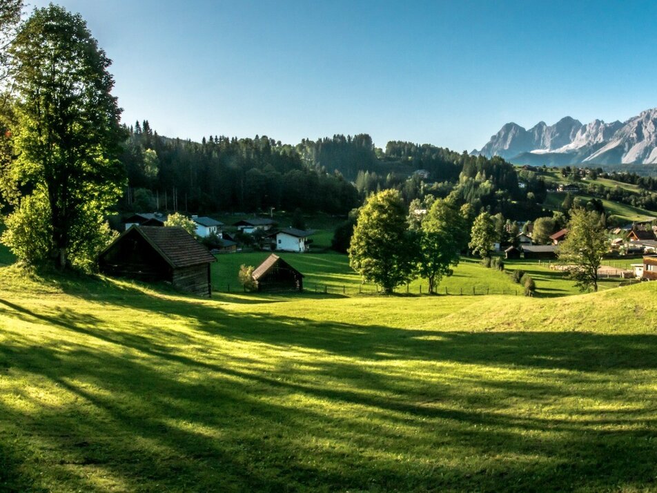 In Obertal, the trail passes farmhouses and heads into Untertal. From there, a gravel road leads to Fastenberg. On Fastenberg, you’ll reach the Planai Panorama Road, which descends into Schladming.