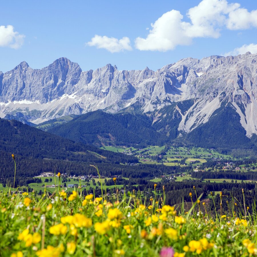 Setting out from Mandling, the first day of this trail begins on the right of the River Enns with an easier tour. We will hike in a relatively brief period of time from Mandling over the Vorberg and out onto the broad high plateau known as the Ramsau. We head east with views of the mighty rock walls of the Dachstein massif and the countless peaks of the Schladminger Tauern range.