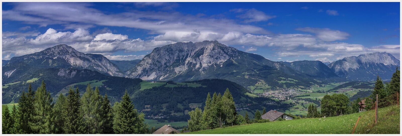 Starting at the village of Untertal we first head towards Obertal for a short bit before we turn North towards Rohrmoos. We walk across the meadows of Rohrmoos' farms and along the North slopes of the ski mountain Hochwurzen head towards the Preuneggtal valley. Through the Strubschlucht gorge we then head down towards the village of Gleiming at the foot of Reiteralm. The last part of this days' hike takes us to Mandling.