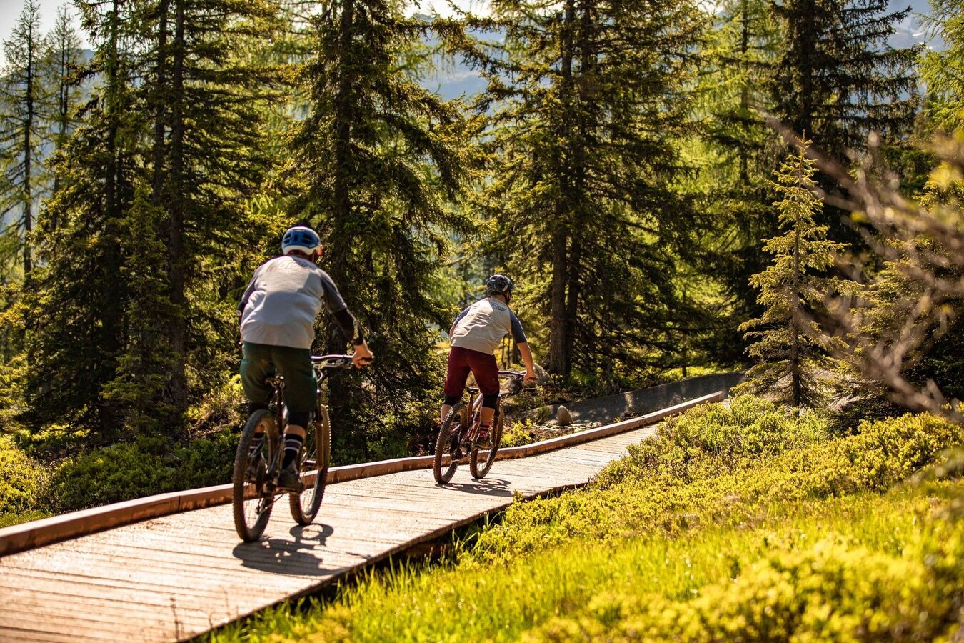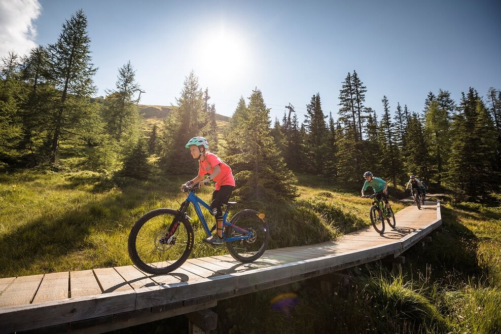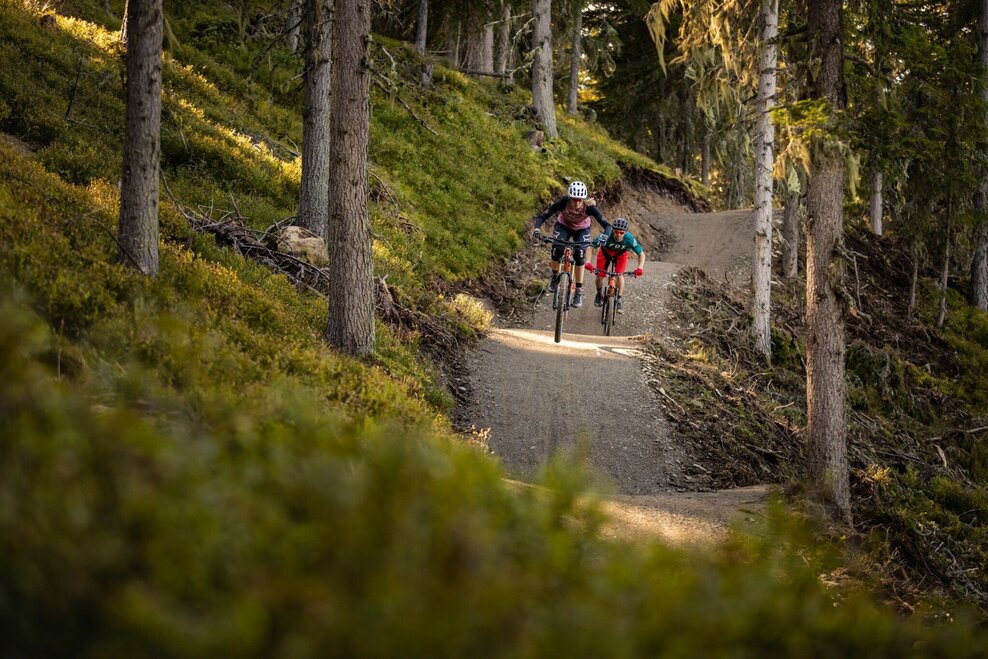 This mountain bike route is particularly suitable for beginners and families with children, as it has a very playful character. The intuitive lines help the riders to find their way around the terrain and also dictate the right speed. So nothing stands in the way of a successful bike excursion!