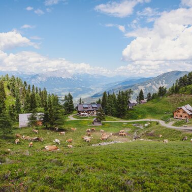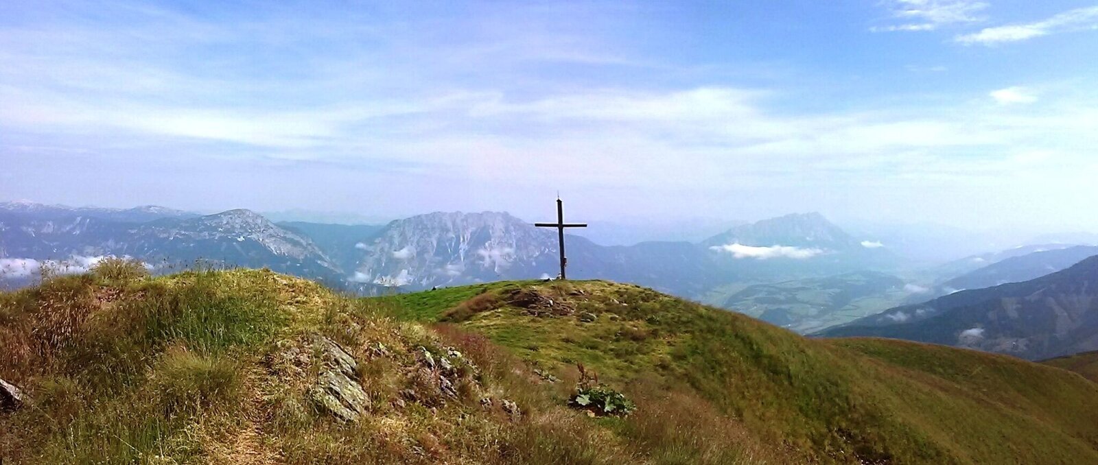 This peak has a few surprises in store. An easy drive from Pruggern to the Bottinghaus sets the stage for a very scenic half-day hike. From the Bottinghaus, we hike along an uphill road to the right, reaching a trail crossing in about 10 minutes, the start of a beautiful forest path. Things begin very relaxed, as we make our way through ancient high forests, home to gnarled spruce, larch and pine, crossing a number of clearings, and soon coming to the forest’s edge. Now it gets a little steeper, hiking as we are through a zone where the forest struggles to persist. Isolated small larch punctuate extended fields of rhododendron, serving as enchanting photo motifs. After barely a half-hour’s walk, we reach the empty Pleschnitzzinken hut, now able to enjoy the fantastic views of the Ennstal, Stoderzinken and Dachstein. Following a gently ascending, grassy ridgeline, we can look forward to a relaxing hike all the way up to the summit cross. This summit is like a balcony overlooking Ennstal Valley. And once here at the top, we are certain to be quite surprised by how close the highest of the Tauern peaks actually is. In high summer, the grass is trimmed short by the sheep grazing here, while the monkshood thriving in-between is like a beautiful pillow of blue. We will hike back along the same route.