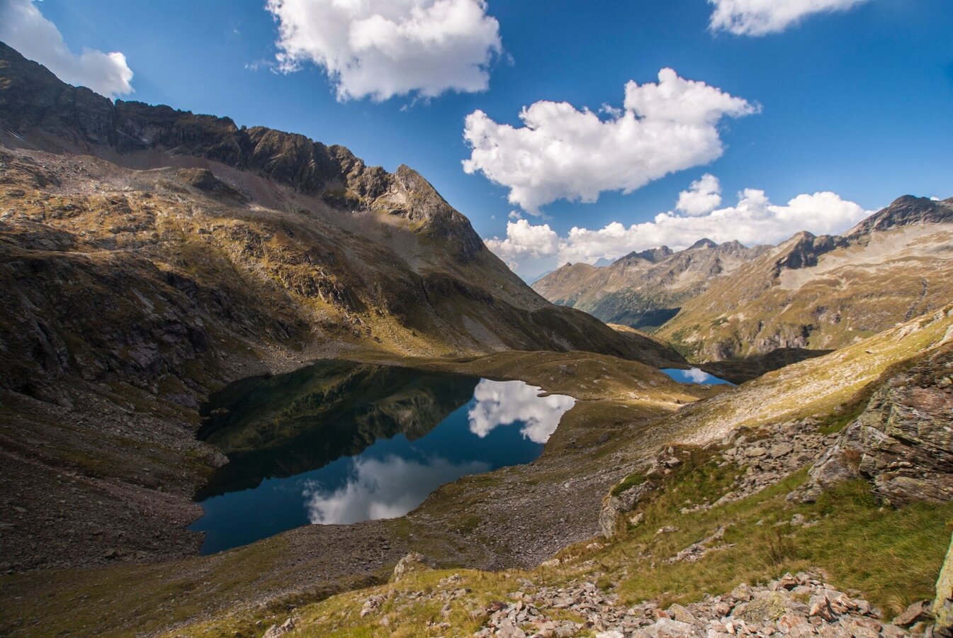 From the Preintalerhütte and Waldhornalm you follow path #784 to the Sonntagskarseen. After just over an hour you will reach the lower of the two lakes, which lie in the middle of an impressive mountain basin. The path continues on the north bank of the lake and a good half an hour later you reach the Oberer Sonntagskarsee. From there, past the east bank, you climb the gravelly path to the striking cut of the Rettingscharte. The view down to the Schwarzensee in the Kleinsölktal is magnificent. Now it goes downhill into the Steinigboden until you finally reach the Schwarzensee at the waterfall near the Schwabalm.