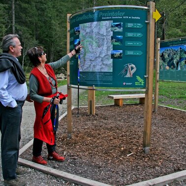 Shortly after Berallerhütte chalet at Kotalm a moderately steep ascent along the wild rushing stream takes you to Preintalerhütte and Waldhornalm chalets, which are situated at an intersection of many hiking trails. The return route is the same way.