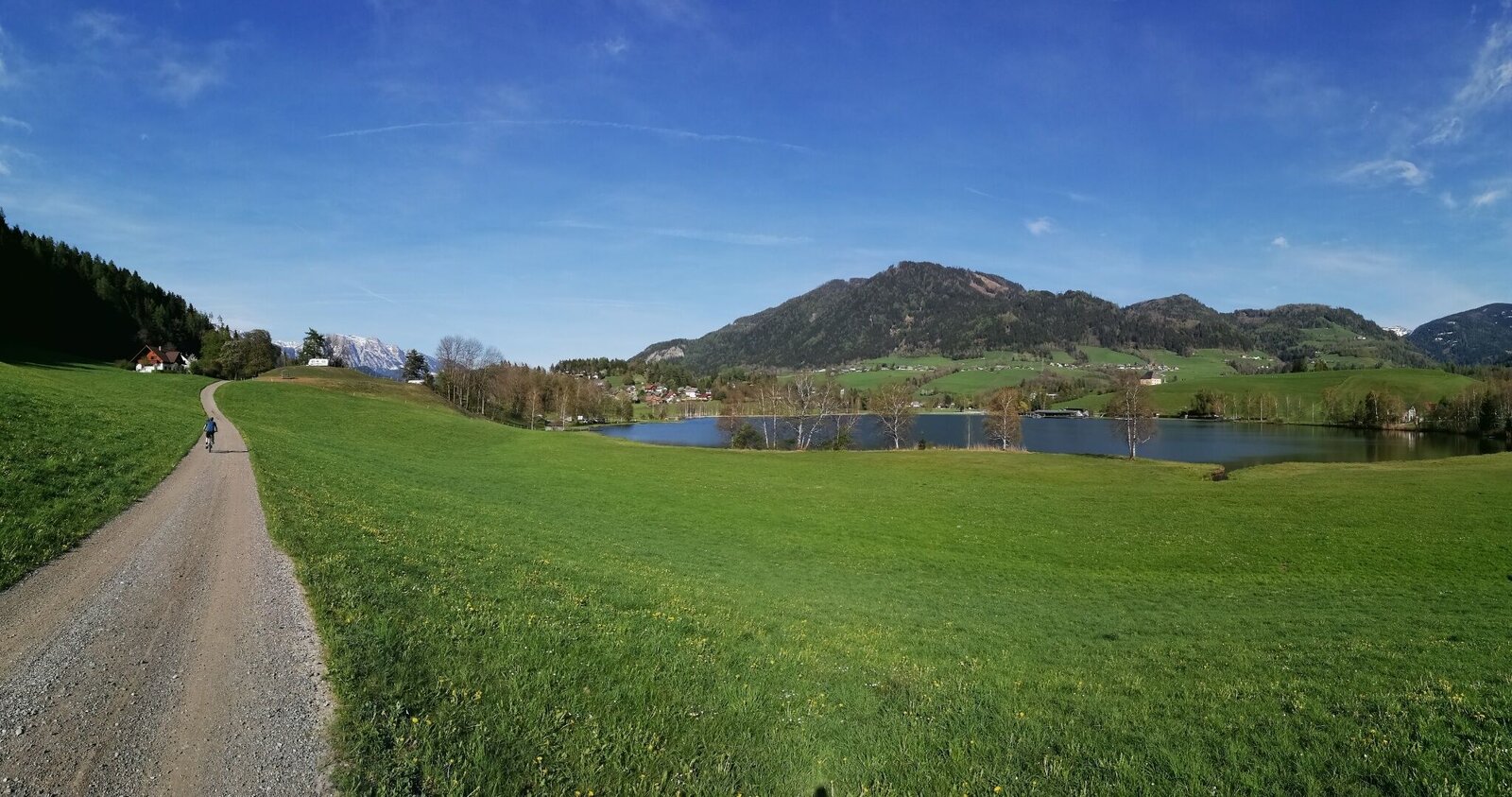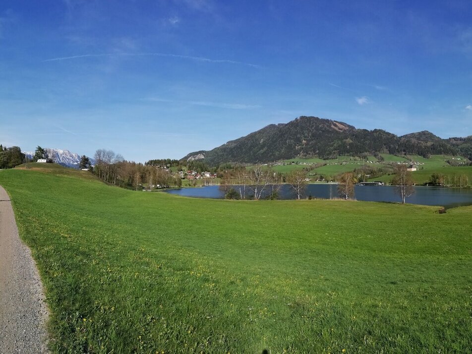Walk along the Putterersee lake to the wooded Kulm, past the campsite and along the road towards Schlattham. Cross the meadow here via a field path and walk along the footpath back to the Putterersee.