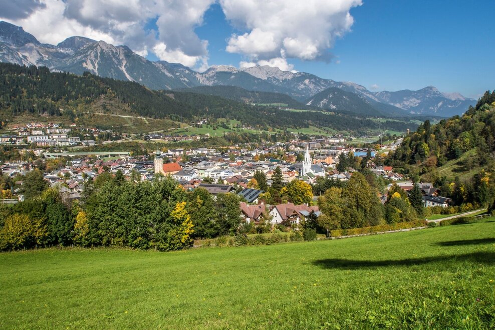 A little further downhill on a footpath taking you to the centre of Rohrmoos itself. Here you'll find a small supermarket (Kaufhaus Sieder) and a couple of refreshment stops. On the opposite side of the street, continue along Mosergasse to Hotel Schütterhof. Downhill now to the hairpin where Hintereggweg road turns off. Follow it for about 5 minutes as far as the Oberer Talbachweg. Now across green meadows, you again walk uphill back to Untertal and your original starting point.